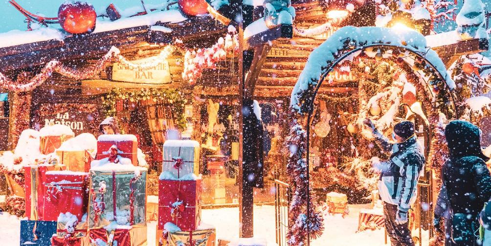 El pueblo parece sacado de una postal, gracias a sus chalets de madera y luces navideñas, ¡te encantará! ✨