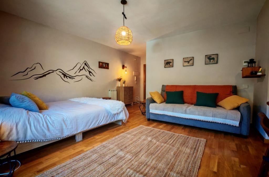 Apartament de 1 a 4 places: 1 habitació, cuina equipada, 1 bany complet i sofà llit al saló.