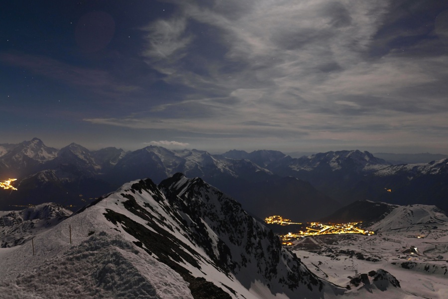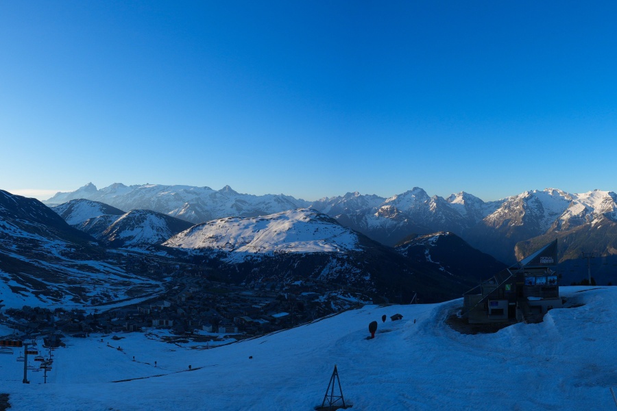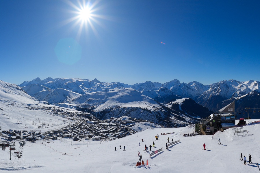 Coneguda com la "Illa del Sol", Alpe d'Huez és una de les estacions d'esquí més assolellades dels Alps francesos , ubicada al massís de Grans Rousses. Aquest complex esquiable compta amb una extensa varietat de pistes per a tots els nivells i unes vistes impressionants de la vall de Romanche i els cims circumdants. L'estació, situada a 1.860 metres d'altitud, ofereix 250 km de pistes i la famosa pista negra de Sarenne, de 16 km de longitud, una de les més llargues del món. Alpe d'Huez és una destinació excel·lent tant per als que volen un dia complet d'esquí com per als que busquen activitats alternatives i un entorn vibrant.