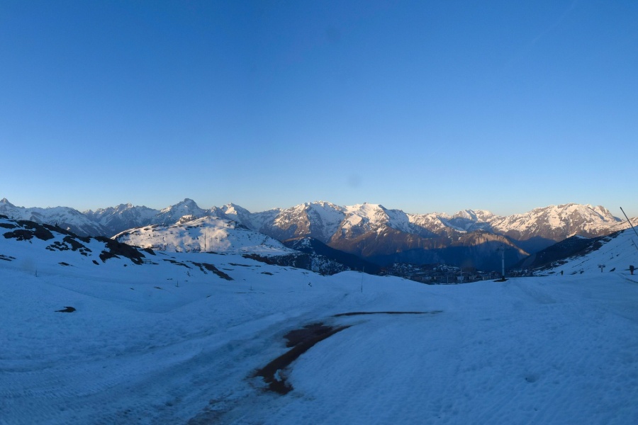 poble i muntanya nevada d'Alpe d'Huez