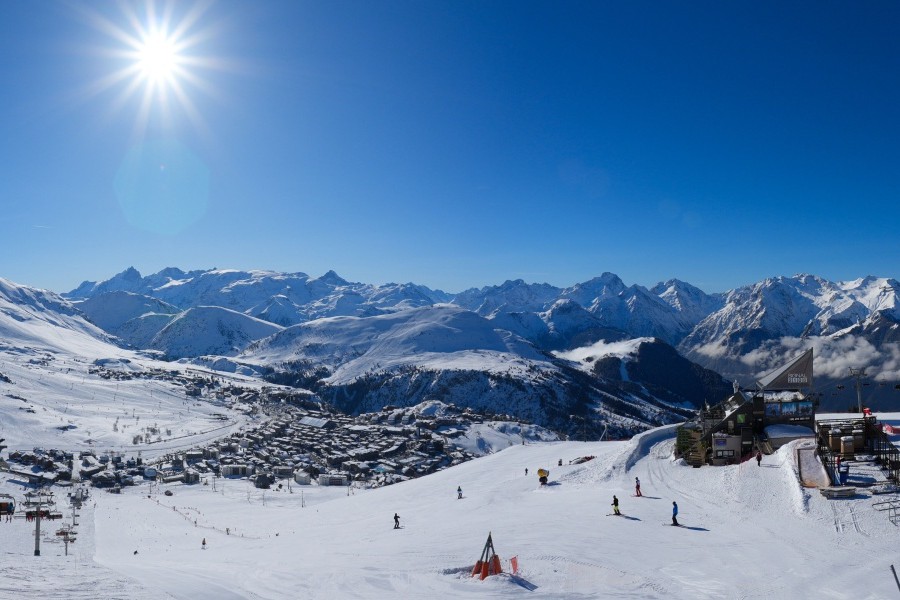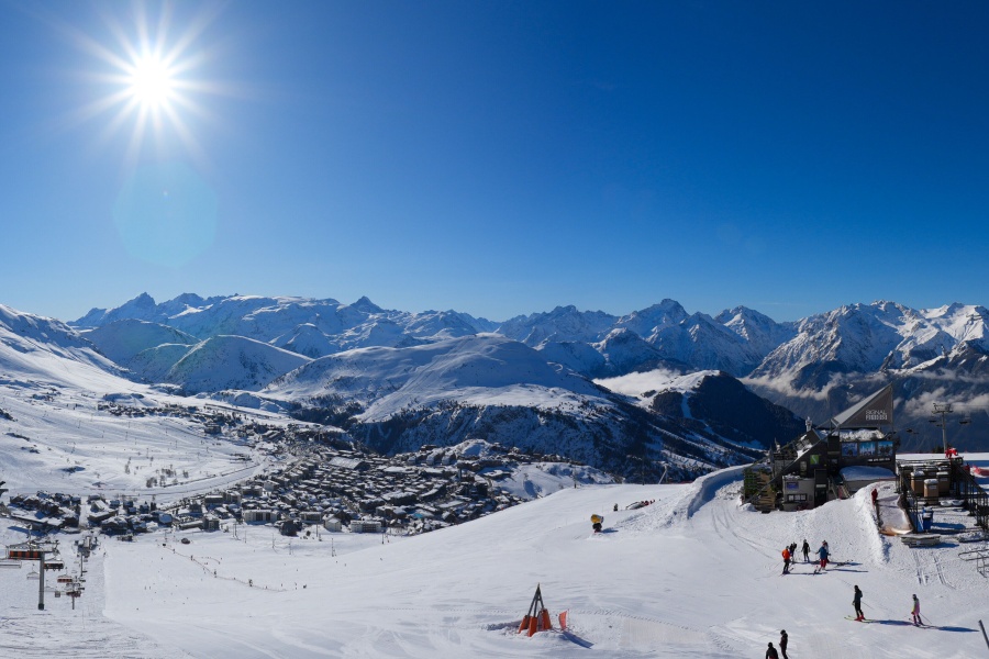 Coneguda com la "Illa del Sol", Alpe d'Huez és una de les estacions d'esquí més assolellades dels Alps francesos , ubicada al massís de Grans Rousses. Aquest complex esquiable compta amb una extensa varietat de pistes per a tots els nivells i unes vistes impressionants de la vall de Romanche i els cims circumdants. L'estació, situada a 1.860 metres d'altitud, ofereix 250 km de pistes i la famosa pista negra de Sarenne, de 16 km de longitud, una de les més llargues del món. Alpe d'Huez és una destinació excel·lent tant per als que volen un dia complet d'esquí com per als que busquen activitats alternatives i un entorn vibrant.