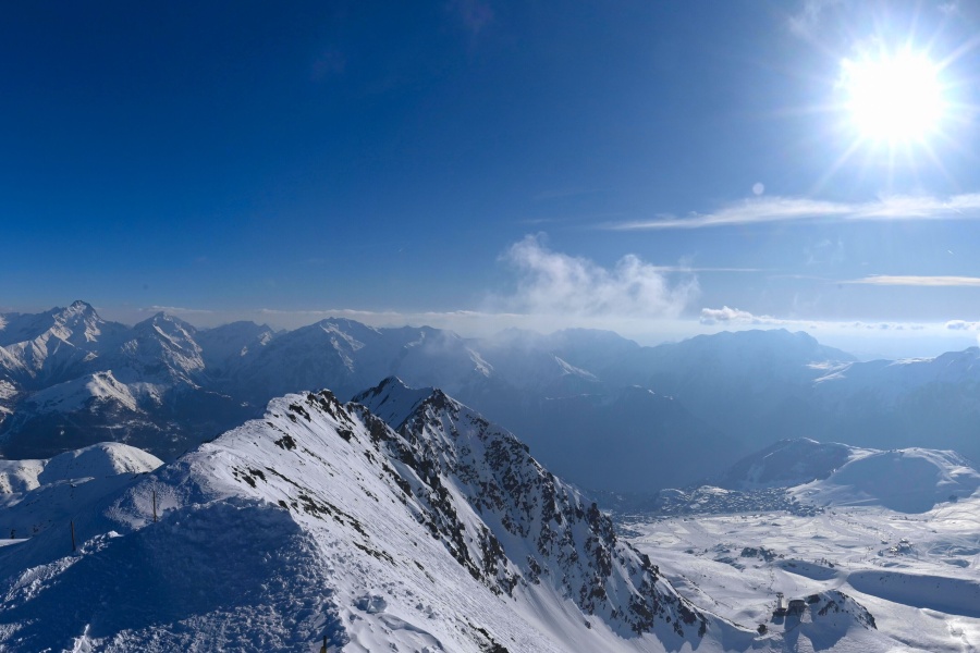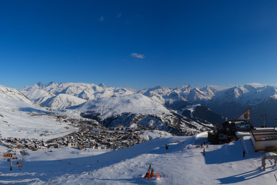 Coneguda com la "Illa del Sol", Alpe d'Huez és una de les estacions d'esquí més assolellades dels Alps francesos , ubicada al massís de Grans Rousses. Aquest complex esquiable compta amb una extensa varietat de pistes per a tots els nivells i unes vistes impressionants de la vall de Romanche i els cims circumdants. L'estació, situada a 1.860 metres d'altitud, ofereix 250 km de pistes i la famosa pista negra de Sarenne, de 16 km de longitud, una de les més llargues del món. Alpe d'Huez és una destinació excel·lent tant per als que volen un dia complet d'esquí com per als que busquen activitats alternatives i un entorn vibrant.