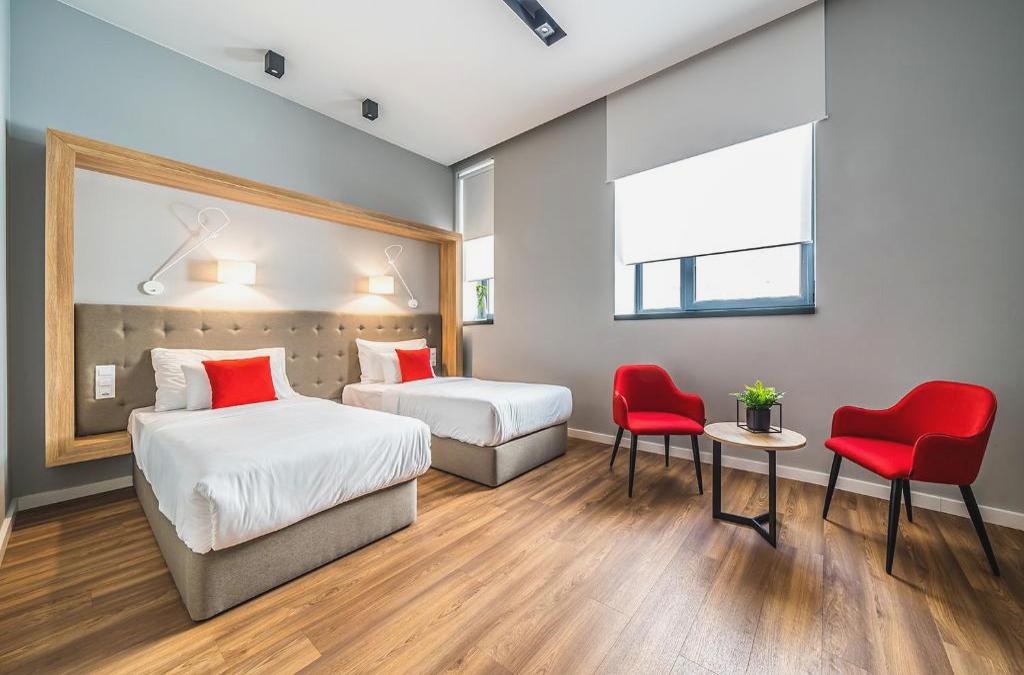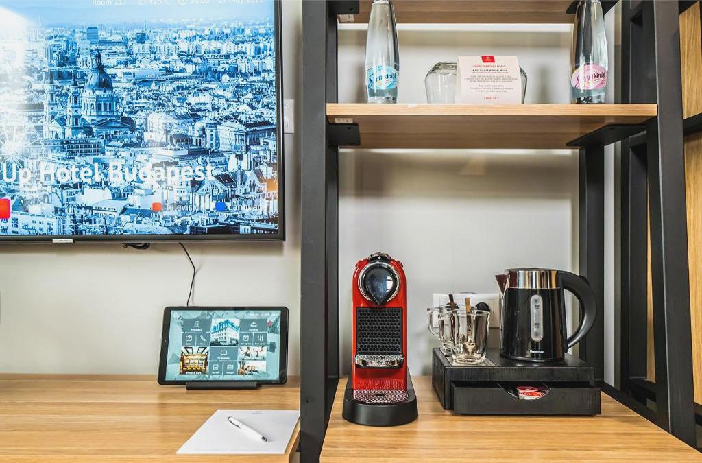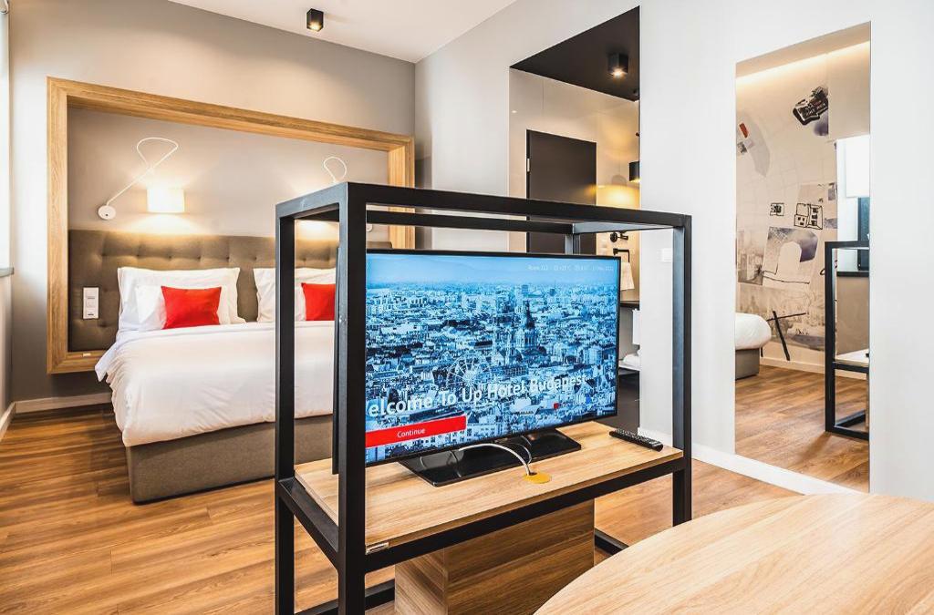 Die klimatisierten Zimmer sind mit einem Schreibtisch, einer Minibar, einem Safe, einem Flachbildfernseher und einem eigenen Badezimmerezimmer mit Dusche oder Badezimmerezimmerewanne, Haartrockner und Pflegeprodukten ausgestattet. Ein Wasserkocher ist in allen Zimmern vorhanden. Handtücher und Bettwäsche sind in allen Zimmern des Up Hotel Budapest vorhanden.