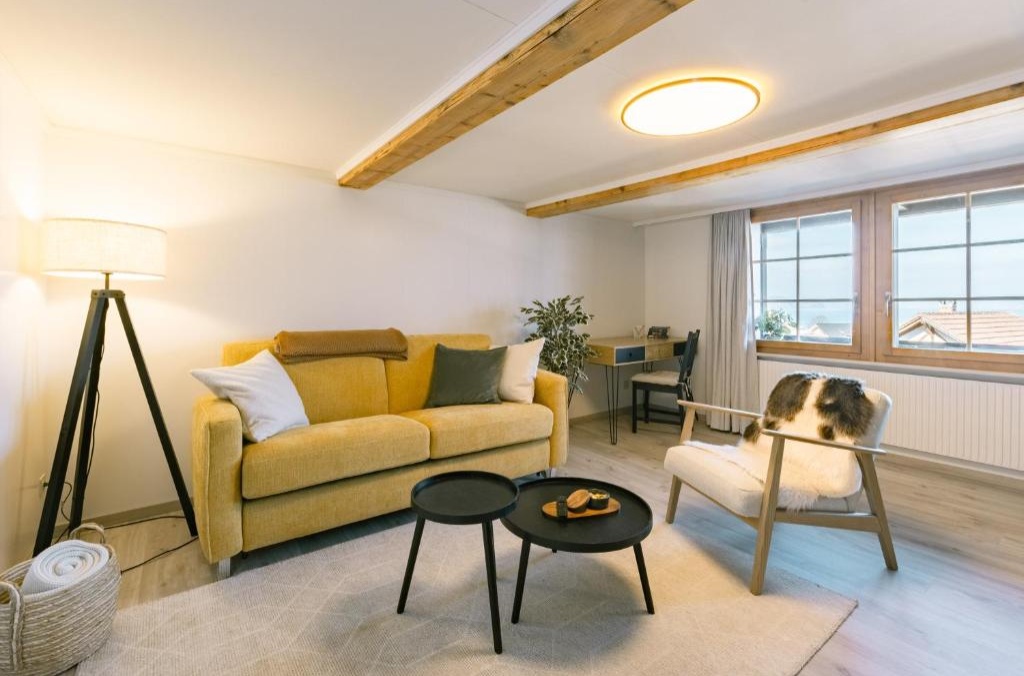 Die Unterkunft Skandi Lodge mit Seesicht nahe Interlaken, die in Leissigen gelegen ist, bietet kostenlosem WLAN und Seeblick. Diese Ferienwohnung besticht durch einen kostenlosen Privatparkplatz und befindet sich in einer Gegend mit Möglichkeiten zum Wandern und Fahrradfahren. Diese Ferienwohnung mit einem Balkon und Bergblick hat 1 Schlafzimmer, ein Wohnzimmer, einen Flachbild-TV, eine gut ausgestattete Küche mit einem Kühlschrank und einer Mikrowelle sowie 1 Badezimmer mit einer Dusche. In dieser Ferienwohnung werden Handtücher und Bettwäsche angeboten. Grindelwald Terminal liegt 26 km von der Unterkunft Skandi Lodge mit Seesicht nahe Interlaken entfernt, während Giessbachfälle 30 km von der Unterkunft entfernt ist. Der nächstgelegene Flughafen ist der Flughafen Bern, 41 km von der Unterkunft Skandi Lodge mit Seesicht nahe Interlaken entfernt.