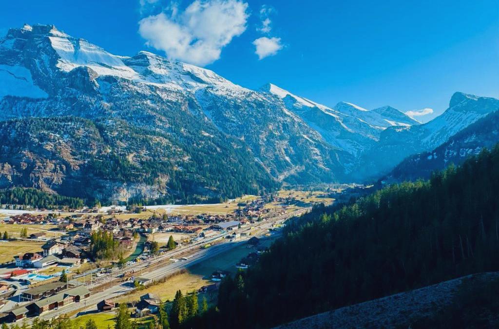 Die Unterkunft Bellevue & Classy Mountain View apartment ist gelegen in Kandersteg, 700 m von Autoverlad Lötschberg und 38 km von Bahnhof Wilderswil, in einer Gegend mit Möglichkeiten zum Skifahren. Sie hat eine Gemeinschaftslounge, eine Terrasse, Gartenblick und kostenloses WLAN in der ganzen Unterkunft. Diese Ferienwohnung mit einem Balkon und Bergblick bietet 1 Schlafzimmer, ein Wohnzimmer, einen Flachbild-TV, eine gut ausgestattete Küche mit einem Kühlschrank und einem Geschirrspüler sowie 1 Badezimmer mit einer Dusche. In dieser Ferienwohnung werden Handtücher und Bettwäsche angeboten. Vor Ort ist ein Abstellraum für Skier verfügbar. Bahnhof Interlaken Ost liegt 38 km von der Unterkunft Bellevue & Classy Mountain View apartment entfernt, während Staubbachfall 48 km entfernt ist. Der nächstgelegene Flughafen ist der Flughafen Bern, 57 km von der Unterkunft Bellevue & Classy Mountain View apartment entfernt.