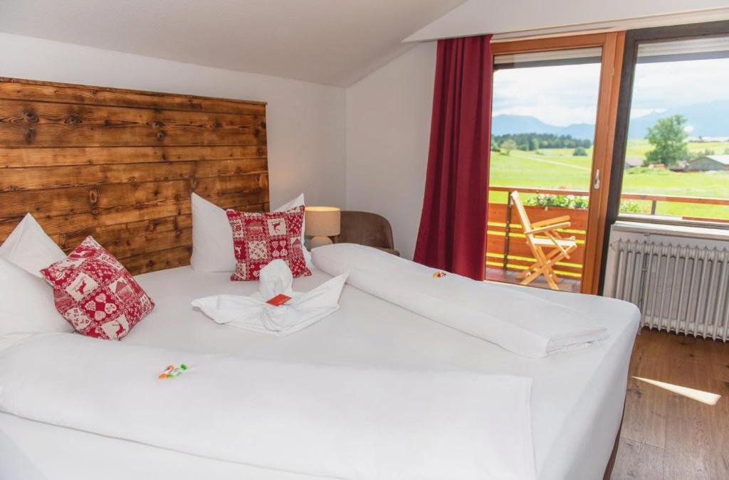 Dieses familiengeführte Hotel erwartet Sie im bayerischen Allgäu, nur 100 m vom Hopfensee entfernt. Freuen Sie sich auf traditionelle Zimmer, eine wunderschöne Gartenterrasse und einen Wellnessbereich. Die Zimmer im Hotel Alpenglühn verfügen über einen Balkon, Kabel-TV und ein eigenes Bad. Der Wellnessbereich im Hotel Alpenglühn umfasst eine Sauna und eine Infrarotkabine. Darüber hinaus bietet Ihnen das Alpenglühn einen Panoramablick auf die österreichischen und bayerischen Alpen. Den Forggensee erreichen Sie von der Unterkunft aus nach 5 km und von den Schlössern Neuschwanstein und Hohenschwangau trennen Sie 10 km. Die Parkplätze am Hotel nutzen Sie kostenfrei und auf die Autobahn A7 gelangen Sie nach 2 km. Ein Trockenraum für Fahrrad- und Motorradfahrer ist ebenfalls vorhanden.
