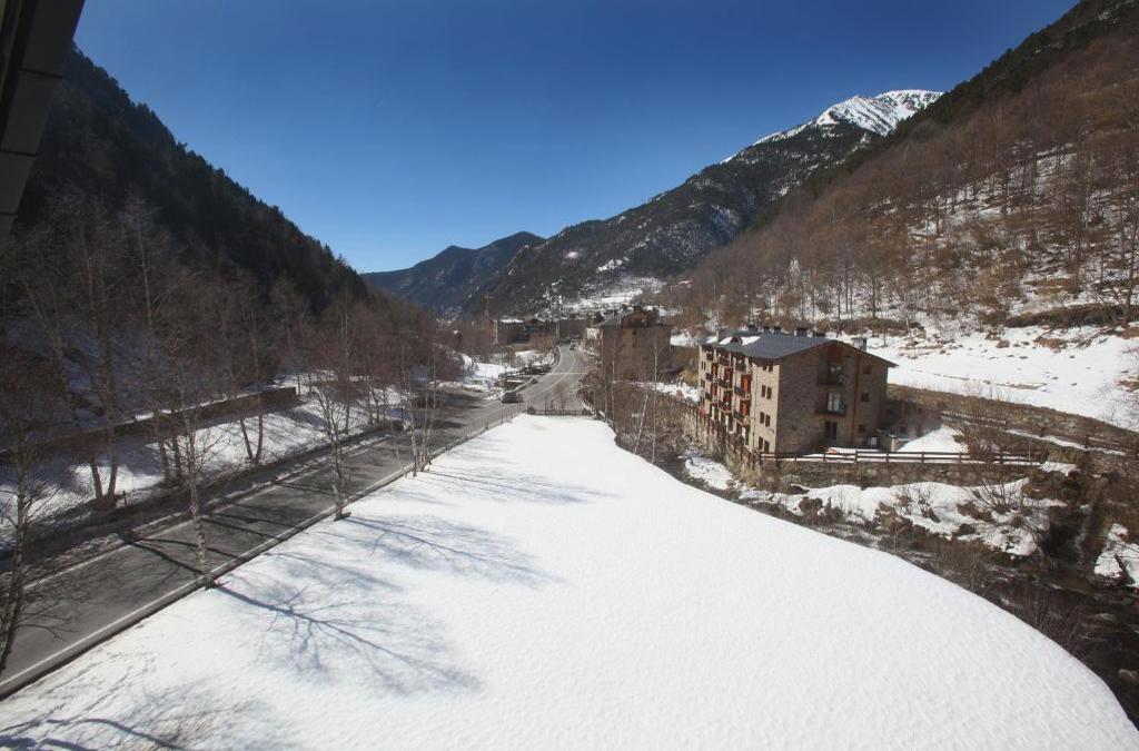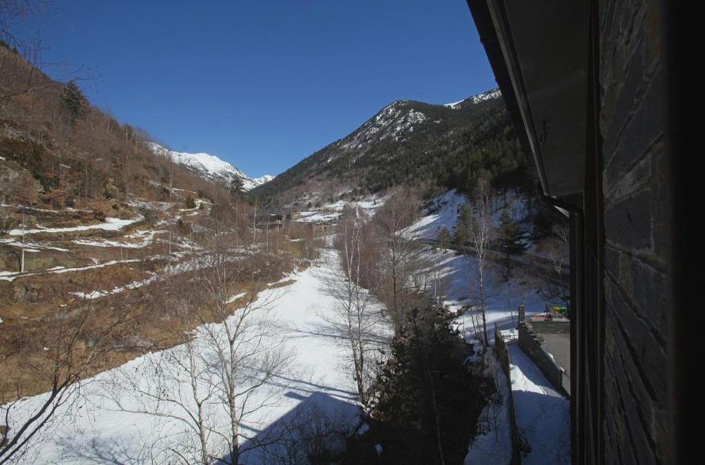 Die Zimmer aller Apartments und des Speisesaals liegen nach außen und haben große Fenster, durch die Sie den Fluss und die Hochgebirgslandschaft des Ordino-Tals sehen können.