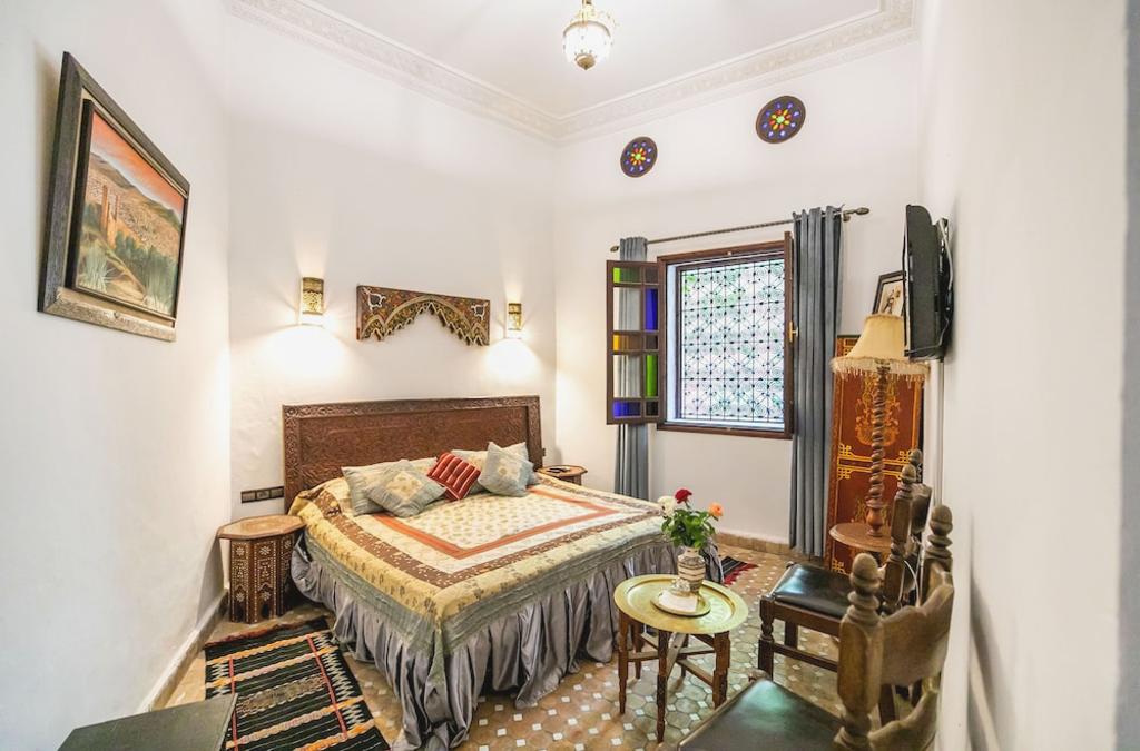Dieses traditionelle Hotel bietet ein Hamam und elegante Zimmer mit Klimaanlage, von denen die meisten auf den Garten blicken. Die Terrasse hat ein großes Zelt mit einem typisch marokkanischen Wohnzimmer im Inneren. Es befindet sich in der Medina von Fès, nur 5 Gehminuten vom Bab-Boujloud-Platz und dem Batha-Museum entfernt. Die 24-Stunden-Rezeption bietet einen touristischen Informationsservice. Alle Zimmer sind marokkanisch eingerichtet und mit Fliesenböden ausgestattet. Es gibt Wi-Fi-Zugang im gesamten Hotel. Das Frühstück wird jeden Morgen serviert und kann auf Ihrem Zimmer genossen werden. Das Restaurant Jardin Chrifa serviert marokkanische Spezialitäten im hellen Speisesaal oder auf der Terrasse neben dem Wandbrunnen. Das Dar Batha Museum ist 0,3 km, die Medersa Bou-Inania 0,4 km, die Universität von Al-Karaouine 0,9 km und die Merinidengräber 1,2 km entfernt.