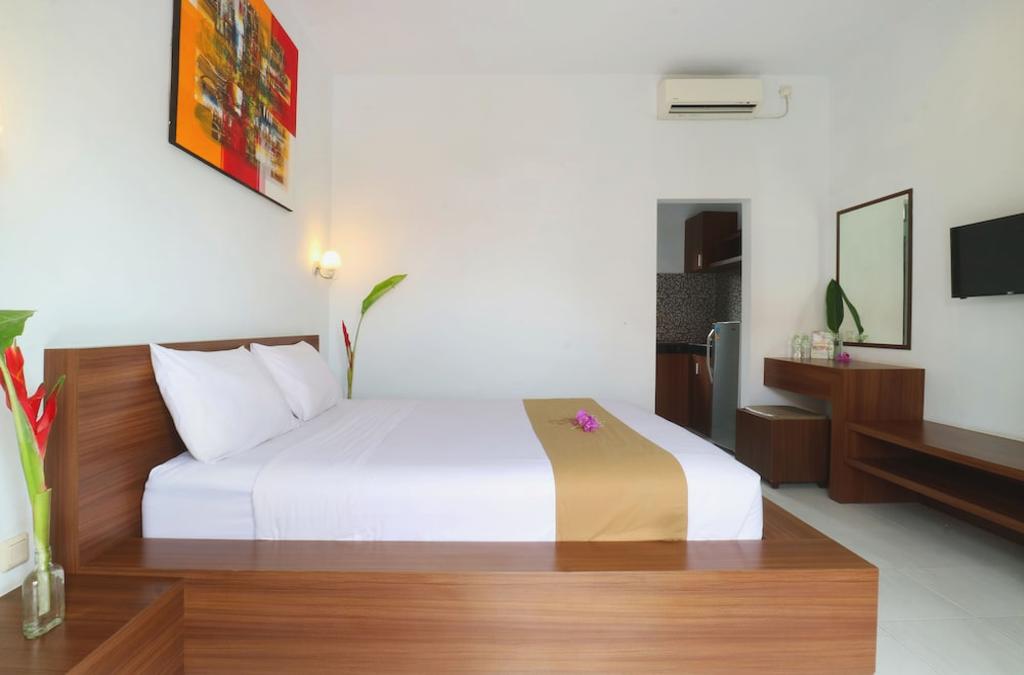 Bei einem Aufenthalt im Pondok Jempiring Kuta Bali wohnen Sie in der Nähe von Kuta (Ngurah Rai Kuta Ring Road Area), eine 5-minütige Fahrt von Tuban Beach und Poppies Lane II entfernt. Dieses Hotel liegt außerdem nur 3 mi (5,3 km) von Kuta Beach und 3,5 mi (5,5 km) von Jimbaran Beach entfernt. Mit einem Außenpool und vielen anderen Freizeitangeboten werden Sie keine Zeit zu verlieren haben. Es gibt auch einen Garten, in dem Sie sitzen und die Landschaft genießen können. Zu den weiteren Annehmlichkeiten dieses Hotels gehören kostenloser drahtloser Internetzugang und ein Concierge-Service. Mehrsprachiges Personal und ein Geldautomat sind ebenfalls vorhanden. Gegen Aufpreis wird ein Flughafentransfer für Hin- und Rückfahrt angeboten, und das Parkplatz vor Ort ist kostenlos. Zu den besonderen Annehmlichkeiten des Pondok Jempiring Kuta Bali gehört ein Lebensmittelgeschäft/Convenience Store. Fühlen Sie sich in einem der 10 klimatisierten Gästezimmer wie zu Hause. Ein kostenloser drahtloser Internetzugang hält Sie auf dem Laufenden, und Kabelfernsehen steht zu Ihrer Unterhaltung zur Verfügung. Die Bäder sind mit Duschen und Designer-Toilettenartikeln ausgestattet. Zu den Annehmlichkeiten gehören Schreibtische und kostenloses Wasser in Flaschen, und die Zimmer werden täglich gereinigt.