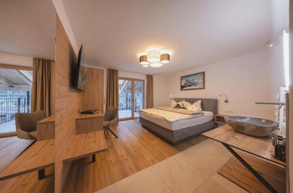 Das Haus am Wildbach in Neustift im Stubaital bietet einen Grill und Bergblick. Die Privatparkplätze an der Unterkunft nutzen Sie kostenfrei. Die Unterkunft ist im modernen alpenländischen Stil eingerichtet und bietet eine lange Halle, von der Sie in alle Zimmer gelangen. Es gibt 3 Schlafzimmer in einem Apartment. Eines der Zimmer verfügt über einen kleinen Wohnbereich mit einem Sofa und einem Flachbild-TV. Die anderen beiden Schlafzimmer sind mit einem modernen Waschbecken aus Stein ausgestattet. Es gibt 2 Badezimmer und eine voll ausgestattete Küche mit einem Sitzbereich. In der Umgebung können Sie zahlreichen Aktivitäten wie Skifahren, Radfahren und Wandern nachgehen. Der Skilift Neustift und die Elferbergbahn liegen jeweils 3,7 km vom Haus am Wildbach entfernt. Der nächstgelegene Flughafen ist der 20 km von der Unterkunft entfernte Flughafen Innsbruck.