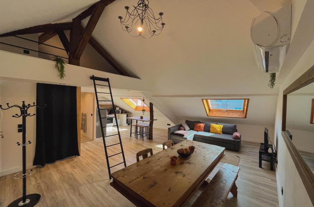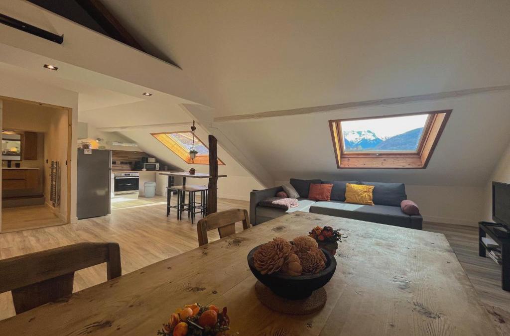 Die Unterkunft Cocon sous les toits ist gelegen in Albertville, 1,9 km von Olympiastadion Albertville, 44 km von Col de la Madeleine und 45 km von Palais de l Ile entfernt. Sie bietet Bergblick und kostenloses WLAN in der ganzen Unterkunft. Diese Ferienwohnung mit Klimaanlage besteht aus 1 Schlafzimmer, einem Wohnzimmer, einer voll ausgestatteten Küche mit einem Kühlschrank und einer Kaffeemaschine sowie 1 Badezimmer mit einer Dusche und einem Haartrockner. In dieser Ferienwohnung werden Handtücher und Bettwäsche zur Verfügung gestellt. Chateau d'Annecy liegt 45 km von der Unterkunft Cocon sous les toits entfernt, während Le Valleen Gondola 46 km entfernt ist. Der nächstgelegene Flughafen ist der Flughafen Chambéry-Savoie, 61 km von der Unterkunft Cocon sous les toits entfernt.