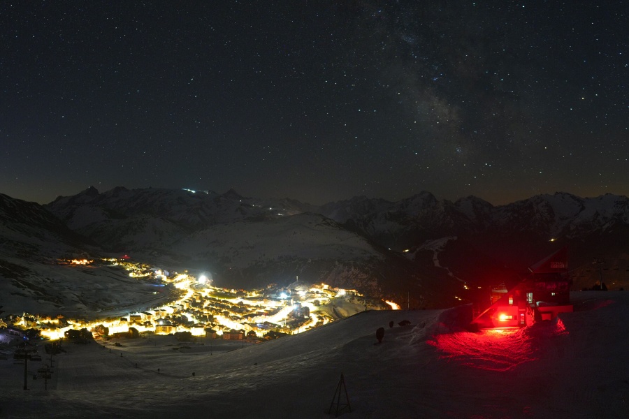 Alpe d'Huez, auch bekannt als "Insel der Sonne", ist eines der sonnigsten Skigebiete der französischen Alpen und liegt im Massiv der Grandes Rousses. Dieses Skigebiet bietet eine große Vielfalt an Pisten für alle Schwierigkeitsgrade und einen atemberaubenden Blick auf das Tal der Romanche und die umliegenden Gipfel. Das Skigebiet liegt auf einer Höhe von 1.860 Metern und bietet 250 km Pisten und die berühmte 16 km lange schwarze Piste Sarenne, eine der längsten der Welt. Alpe d'Huez ist ein hervorragendes Ziel für alle, die einen ganzen Tag lang Skifahren wollen, aber auch für diejenigen, die alternative Aktivitäten und eine lebendige Umgebung suchen.