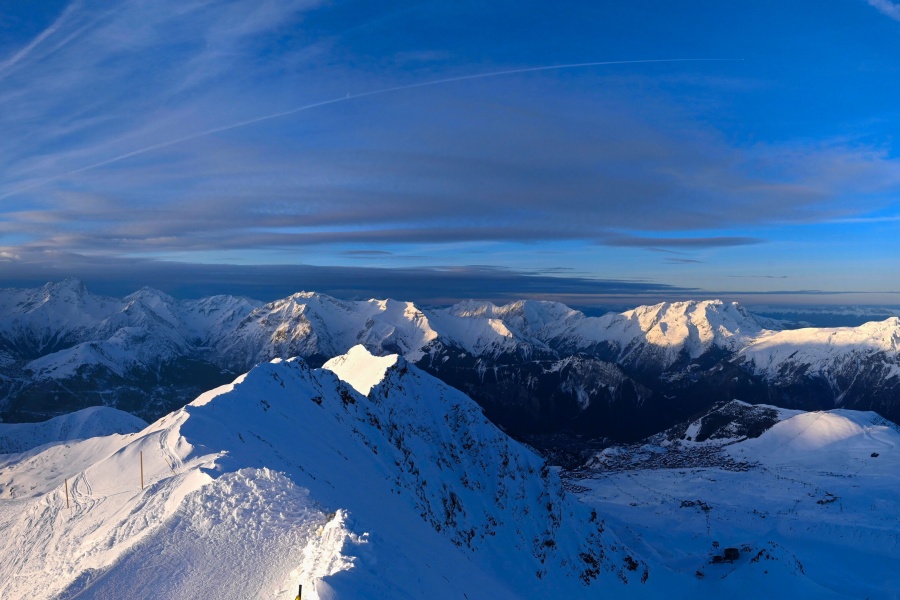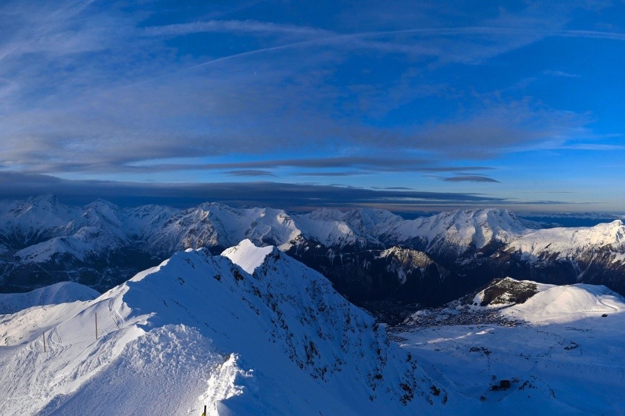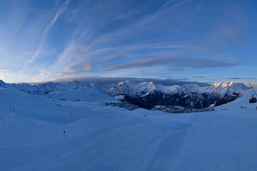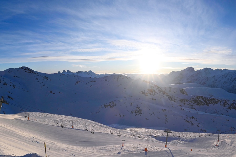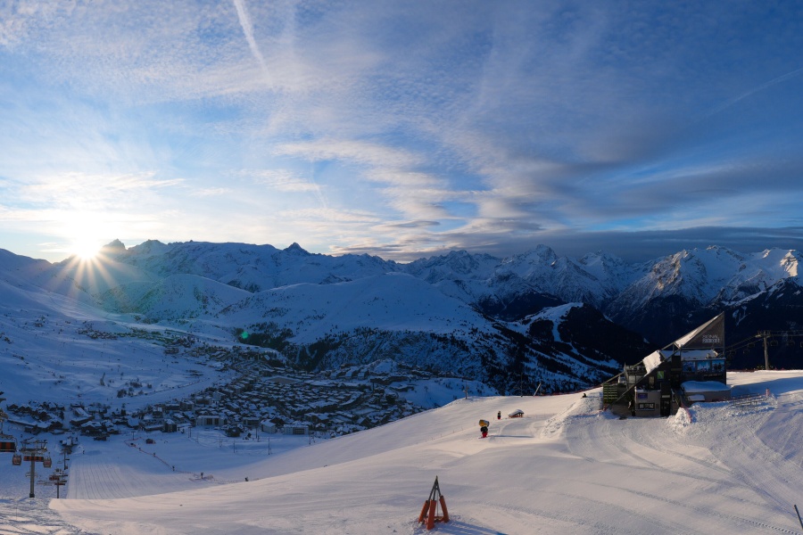 Alpe d'Huez, auch bekannt als "Insel der Sonne", ist eines der sonnigsten Skigebiete der französischen Alpen und liegt im Massiv der Grandes Rousses. Dieses Skigebiet bietet eine große Vielfalt an Pisten für alle Schwierigkeitsgrade und einen atemberaubenden Blick auf das Tal der Romanche und die umliegenden Gipfel. Das Skigebiet liegt auf einer Höhe von 1.860 Metern und bietet 250 km Pisten und die berühmte 16 km lange schwarze Piste Sarenne, eine der längsten der Welt. Alpe d'Huez ist ein hervorragendes Ziel für alle, die einen ganzen Tag lang Skifahren wollen, aber auch für diejenigen, die alternative Aktivitäten und eine lebendige Umgebung suchen.