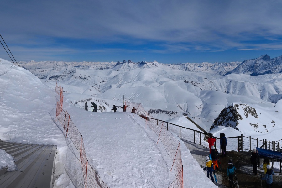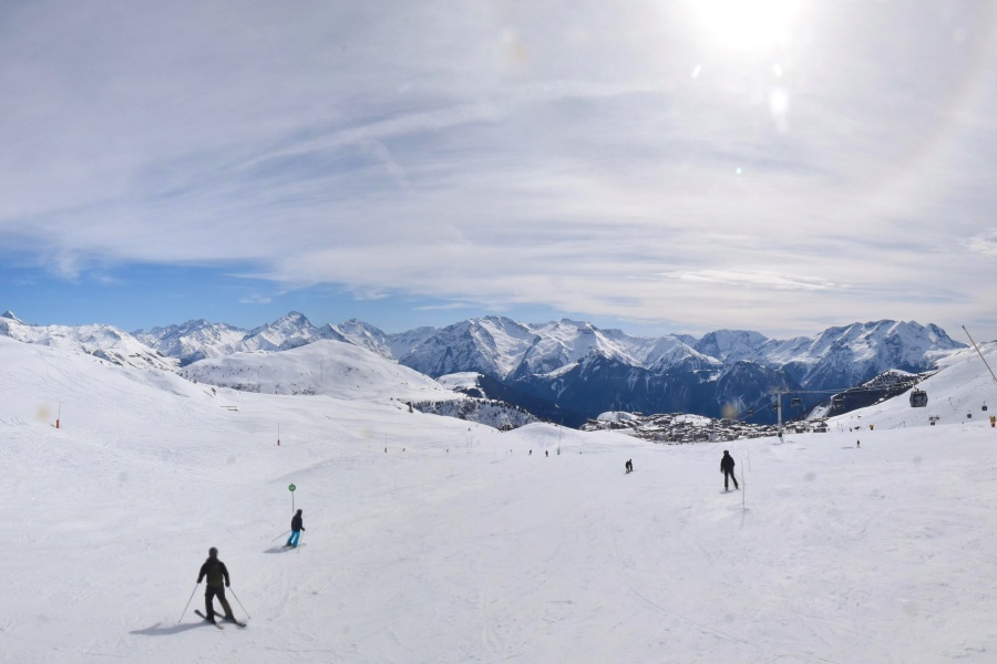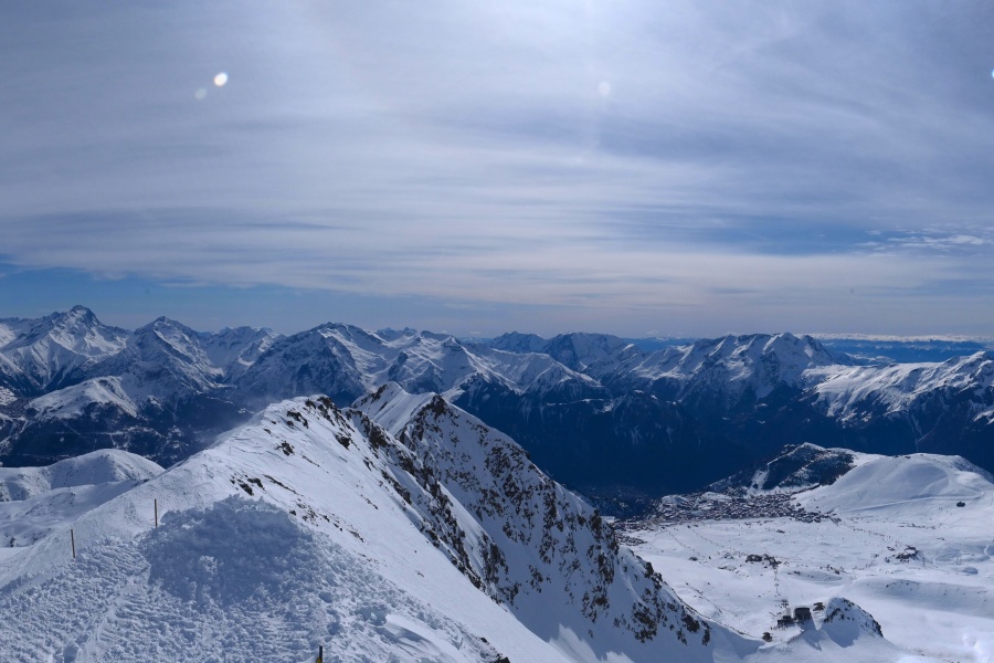 Alpe d'Huez, auch bekannt als "Insel der Sonne", ist eines der sonnigsten Skigebiete der französischen Alpen und liegt im Massiv der Grandes Rousses. Dieses Skigebiet bietet eine große Vielfalt an Pisten für alle Schwierigkeitsgrade und einen atemberaubenden Blick auf das Tal der Romanche und die umliegenden Gipfel. Das Skigebiet liegt auf einer Höhe von 1.860 Metern und bietet 250 km Pisten und die berühmte 16 km lange schwarze Piste Sarenne, eine der längsten der Welt. Alpe d'Huez ist ein hervorragendes Ziel für alle, die einen ganzen Tag lang Skifahren wollen, aber auch für diejenigen, die alternative Aktivitäten und eine lebendige Umgebung suchen.