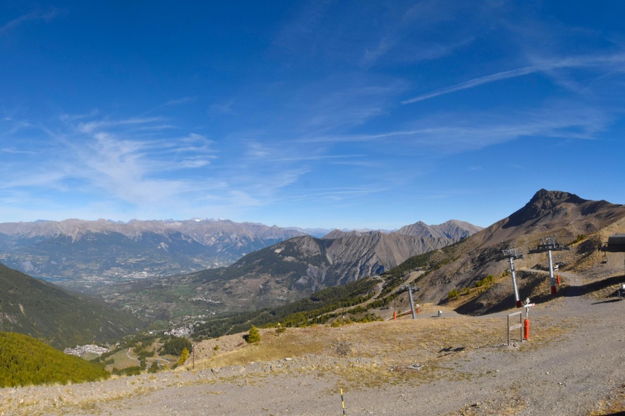 Das gesamte Skigebiet befindet sich im Herzen eines Lärchenwaldes und bietet einen spektakulären Panoramablick auf das Serre-Ponçon-Tal auf der einen Seite und das Parpaillon-Gebirge auf der anderen Seite.