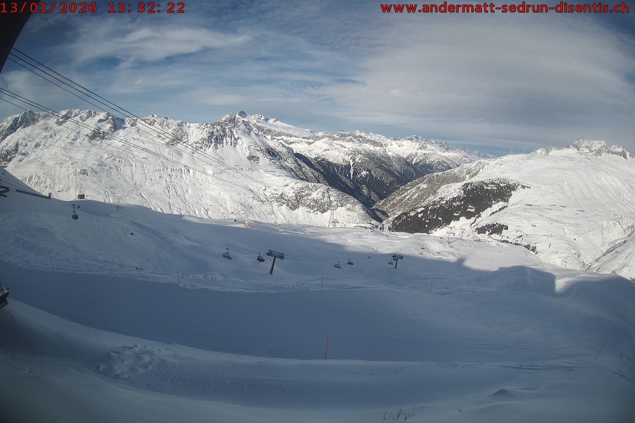 Die Skigebiete sind durch den Sportzug und die Gondelbahn Cuolm da Vi miteinander verbunden. Die Reise vom Bahnhof Dieni in Andermatt-Sedrun zum Bahnhof Sedrun im Skigebiet Disentis dauert nur fünf Minuten.