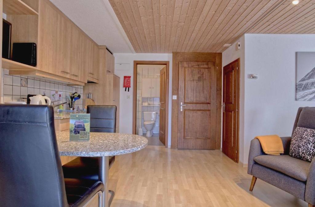 Studio Babice - GRIWA RENT AG is situated in Grindelwald, 3.5 km from Grindelwald Terminal, 40 km from Giessbachfälle, as well as 1.2 km from First. This 3-star apartment offers an ATM. There is a sun terrace and guests can make use of free WiFi and free private parking. The apartment with a balcony and mountain views has 1 bedroom, a living room, a flat-screen TV, an equipped kitchen with a dishwasher and an oven, and 1 bathroom with a shower. Towels and bed linen are available in the apartment. The property has an outdoor dining area. Guests at the apartment can enjoy skiing and cycling nearby, or make the most of the garden. Mount Eiger is 15 km from Studio Babice - GRIWA RENT AG, while Staubbach Falls is 18 km from the property. Bern-Belp Airport is 69 km away.