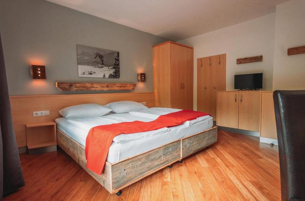 Located in Reutte, within 4.6 km of Train Station Reutte in Tyrol and 18 km of Museum of Füssen, Hahnenkamm Hostel provides accommodation with a garden as well as free private parking for guests who drive. The property features mountain and inner courtyard views, and is 18 km from Old Monastery St. Mang. The guest house has family rooms. At the guest house, every unit includes a desk and a TV. Featuring a private bathroom with a shower and a hair dryer, units at the guest house also offer free WiFi, while selected rooms have a terrace. At the guest house, all units come with bed linen and towels. Guests at the guest house will be able to enjoy activities in and around Reutte, like skiing and cycling. Staatsgalerie im Hohen Schloss is 18 km from Hahnenkamm Hostel, while Neuschwanstein Castle is 22 km away.