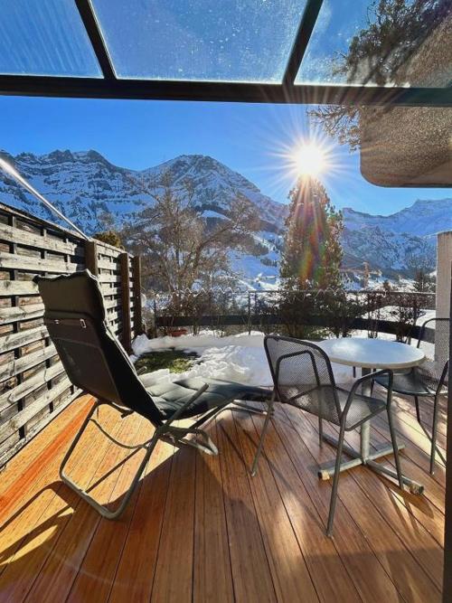 Offering a garden and garden view, Adelhome Studio mit Gartensitzplatz is set in Adelboden, 42 km from Wilderswil and 43 km from Interlaken Ost Train Station. This property offers access to a patio, free private parking and free WiFi. The property is non-smoking and is situated 28 km from Car Transport Lötschberg. The apartment with a terrace and mountain views has 1 bedroom, a living room, a flat-screen TV, an equipped kitchen with an oven and a microwave, and 1 bathroom with a shower. Towels and bed linen are featured in the apartment. The property has an outdoor dining area. A ski equipment rental service and a ski pass sales point are available at the apartment, and guests can go skiing in the surroundings. Bern-Belp Airport is 61 km from the property.
