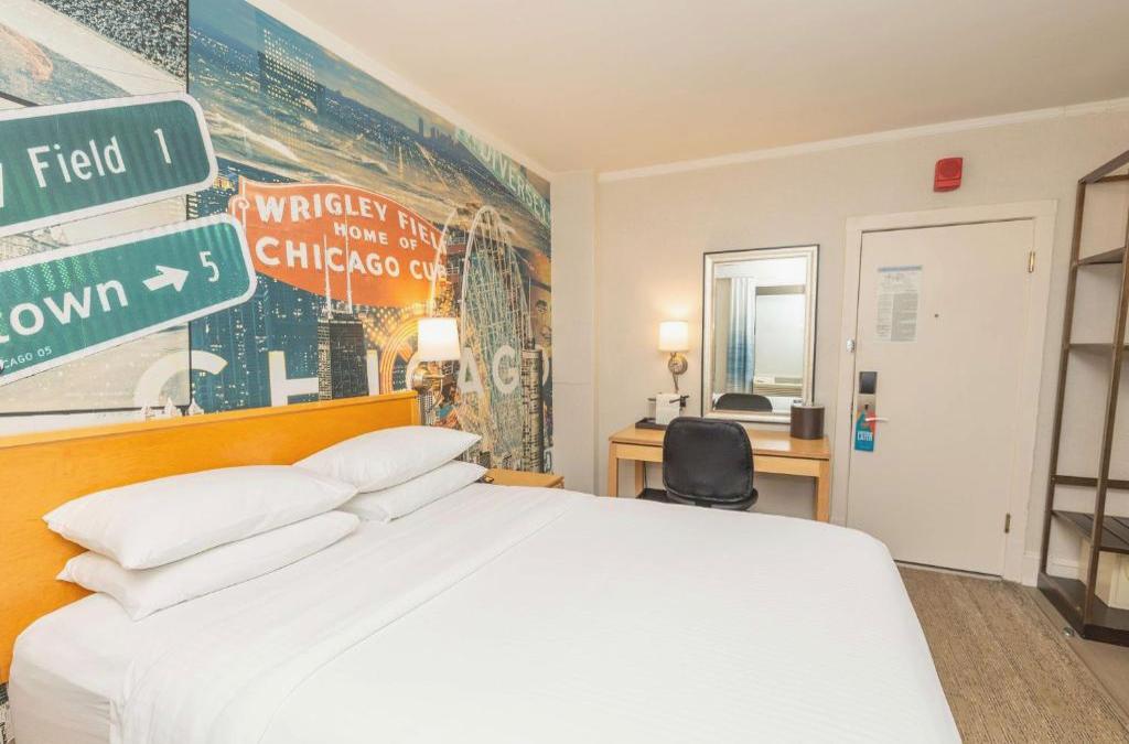 This charming hotel is located in Lincoln Park. There are a total of 133 bedrooms. People who are traveling on business can use the internet connection throughout the hotel. Visitors have a 24-hour reception. Hotel Versey Days Inn by Wyndham Chicago has a room specially designed for families, perfect for those traveling with small children. Hotel Versey Days Inn by Wyndham Chicago has accessible common spaces for people with reduced mobility. Versey Days Inn by Wyndham Chicago does not allow pets. At Hotel Versey Days Inn by Wyndham Chicago, travellers arriving by car have car park spaces available. Hotel Versey Days Inn by Wyndham Chicago has business facilities, ideal for people traveling on business. Some of the mentioned services may be paid.