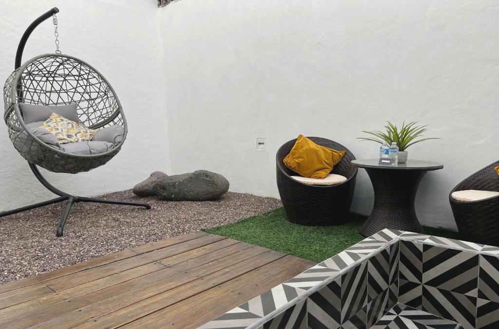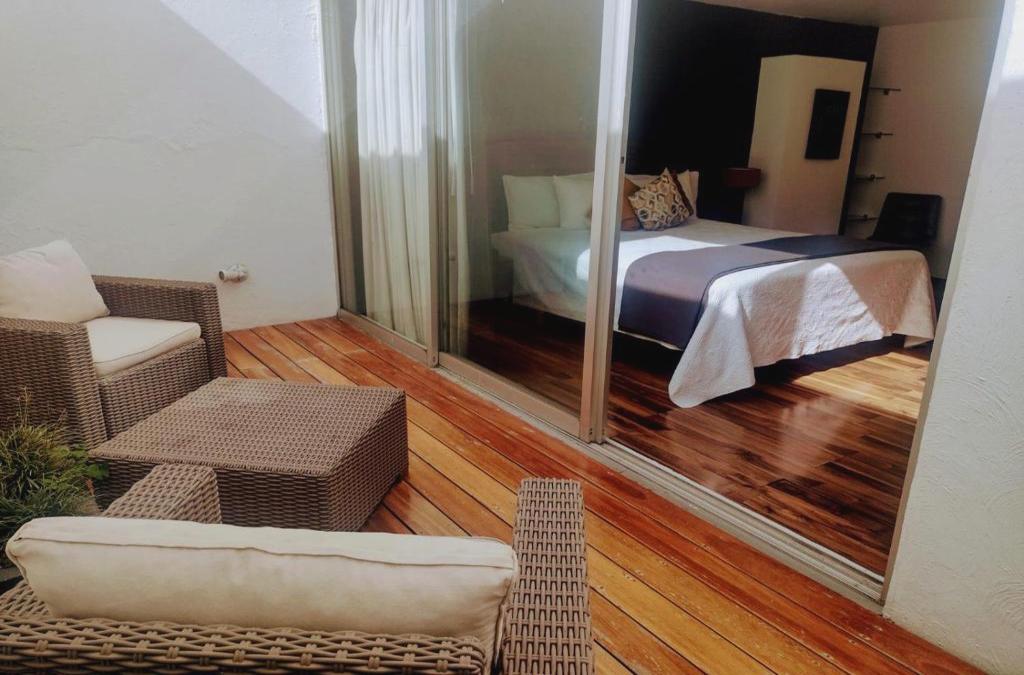 Guadalajara, Mexico's second city, is booming in terms of the industry and tourism ski areas. The hotel is a 20-minute drive from the center and tourist areas of Guadalajara, as well as a 10-minute drive from several shopping areas and the park. The Guadalajara Exhibition Center is also nearby, just a 6-minute drive from the hotel. This city hotel is an urban oasis for those interested in architecture and for the most demanding, cleverly blending contemporary design with elegance and liveliness, where the senses are awakened and comfort is never overlooked. The hotel is an exclusive residence with a suggestive minimalist 'Euro chic' style that mixes spectacular splashes of colour with raw equipment s such as polished concrete, aluminum and wood. A touch of exotic incense and a sophisticated soundtrack add an air of tranquility to the spaces, which showcase modern architecture. It is perfect for enjoying your favourite cocktail at the end of the day. The defined spaces make this hotel much more than a hotel, a reference for the elegance and cosmopolitan culture of Guadalajara.. Pure shapes and simple lines create a delicate aesthetic taste in which distinguished furniture stands out. This fully air-conditioned establishment was renovated in 2008 and comprises 9 bedrooms in total. It also has a lobby with 24-hour reception and safes, a bar where you can relax, WiFi Internet access, room service, car park and a breakfast room.
