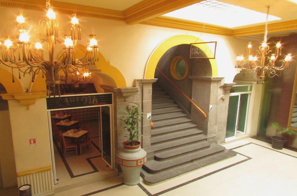 The hotel is located in the heart of the city, just a few steps from the cathedral and the zocalo of Puebla. It is also close to museums, restaurants, parks, and shopping and cultural centers in the historic city center. This historical hotel was built in 1626 and renovated in 2010. It offers 50 bedrooms and excellent facilities. It is one of the oldest buildings in the colonial city of Puebla, with an atmosphere like no other. The city hotel is wheelchair accessible and also has a lobby with 24-hour reception service, a safe, currency exchange facilities, a bar and a restaurant. Guests can also take advantage of the conference facilities, Internet access, room service and laundry service. The hotel offers comfortable bedrooms, each of them with bathroom with shower and hairdryer, free high-speed Internet connection, work desk, safe, direct dial telephone, plasma-screen TV with cable channels and ceiling fan. A buffet breakfast is served every morning. In addition, lunch and dinner can be ordered à la carte.