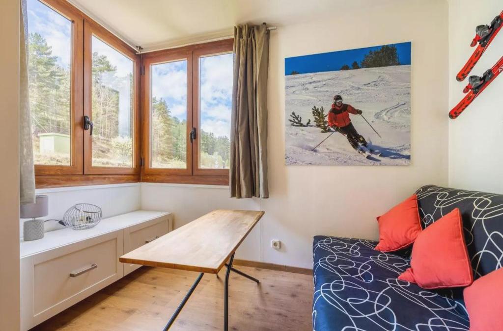 Enmolinate is an accommodation with mountain views located in La Molina, 5 km from La Molina Ski Resort and 9 km from Masella. It is located 15 km from the Real Club de Golf de Cerdaña and has a 24-hour reception. This non-smoking accommodation is 34 km from Vall de Núria Ski Resort. This apartment features 1 bedroom, a living room, a flat-screen TV, an equipped kitchen with a dining area, and a bathroom with a shower and a washing machine. The accommodation has a private entrance. In and around La Molina you can practice various activities, such as skiing and cycling. Enmolinate is 21 km from Llivia Municipal Museum and 28 km from El Cadí-Moixeró Natural Park. The nearest airport is Andorra-La Seu d'Urgell Airport, 54 km away.