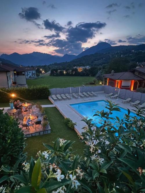 Hotel Merloni, located near Menaggio, surrounded by nature and with ample car park. Guests praise the friendly staff, comfortable rooms, and varied breakfast. Some mention the lack of a handheld shower and the hardness of the beds as areas for improvement. Ideal for skiers looking for peace and quiet and friendly service, with shuttle services to nearby slopes. Good value, perfect for short stays. Enjoy the mountains and the pool!