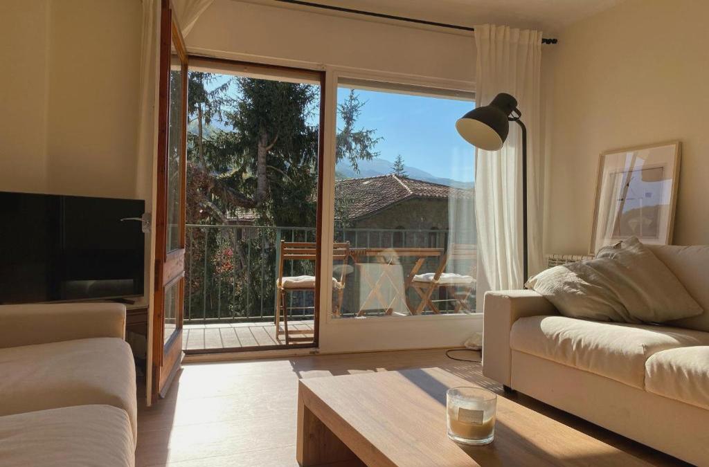 Can Guasch is a sustainable accommodation located in Camprodón, 45 km from the Vall de Núria ski resort and 19 km from Col d'Ares. The accommodation features a lift, private check-in and check-out and free WiFi throughout the accommodation. The apartment has family rooms. The apartment offers a terrace, mountain views, a seating area, a flat-screen cable TV, a fully equipped kitchen with a dishwasher and oven, and a private bathroom with a shower and a hairdryer. There is a microwave, toaster, refrigerator and coffee maker. All accommodation in the apartment complex includes bed linen and towels. In and around Camprodón you can practice various activities, such as skiing, cycling and hiking. Vallter 2000 Ski Resort is 23 km from Can Guasch, while Garrotxa Museum is 31 km away. The nearest airport is Girona-Costa Brava Airport, 93 km away.
