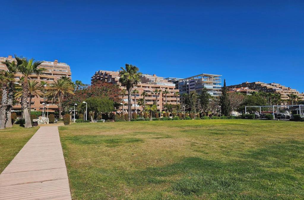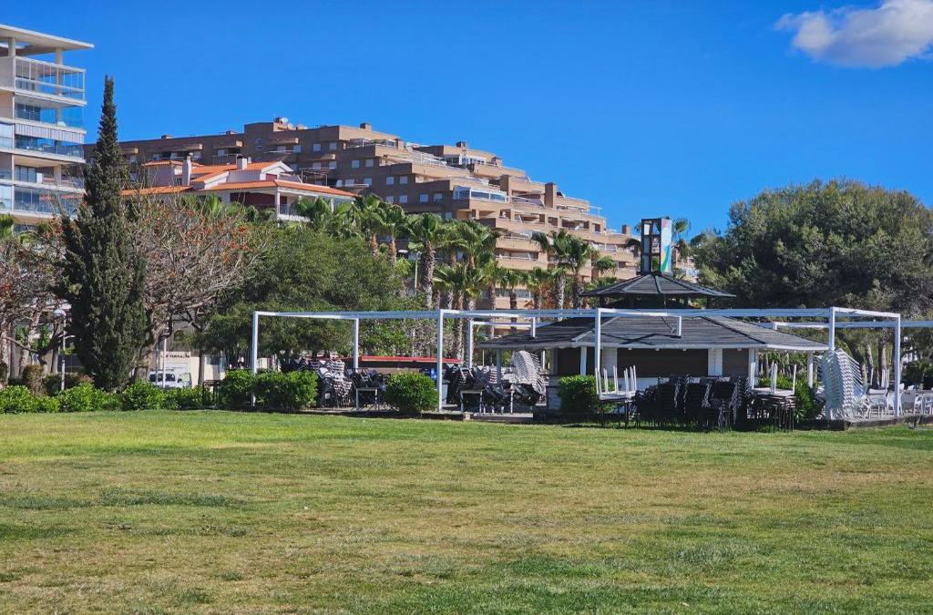 Featuring air-conditioned accommodation with a private pool, mountain view and a patio, ACAPULCO III PRIMERA LiNEA is set in Oropesa del Mar. This beachfront property offers access to a balcony, free private parking and free WiFi. The accommodation offers a lift and free shuttle service for guests. Offering a terrace and sea views, the spacious apartment includes 2 bedrooms, a living room, TV, an equipped kitchen, and 2 bathrooms with a walk-in shower and a bath. The property offers garden views. The apartment has a garden to relax in after a busy day, along with a private beach area. Les Amplaries Beach is 200 metres from ACAPULCO III PRIMERA LiNEA, while Playa Morro de Gos is less than 1 km away. The nearest airport is Castellón–Costa Azahar Airport, 27 km from the accommodation.