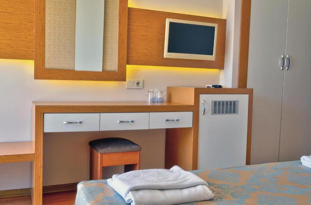The hotel is located in the tourist center of Alanya, a few meters from the beach and 3 km from the center of Konakli. There you will find bars, restaurants, shops and the area to go out at night. The city of Alanya is 12 km away and Antalya Airport is 125 km away. This complex has a garden, terrace and a total of 158 rooms spread over 5 floors. In the lobby there is a 24-hour reception, safe, cloakroom, currency exchange and elevator. In addition, it has a cafeteria, kiosk, bar, restaurant and TV room. By paying an extra fee you can make use of the laundry service and bicycle rental. It also consists of a playground and parking spaces. All rooms have a bathroom with hairdryer, direct dial telephone, satellite or cable TV, radio, rental safe, double bed, individual air conditioning and balcony or terrace. The hotel has an outdoor pool with a children's area and a snack bar, as well as sun loungers and parasols. Guests have at their disposal facilities for playing table tennis, volleyball or gymnastics. With extra charge, massage service is offered and you can play billiards. Sun loungers and parasols can be hired on the beach. All meals are offered in a buffet. At lunchtime you can choose a la carte. You have the possibility to book with all the services included.