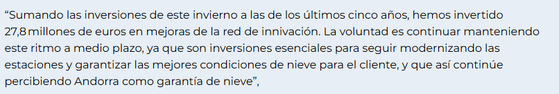 The resorts of Andorra increase investment up to 39 million euros for the new winter season.