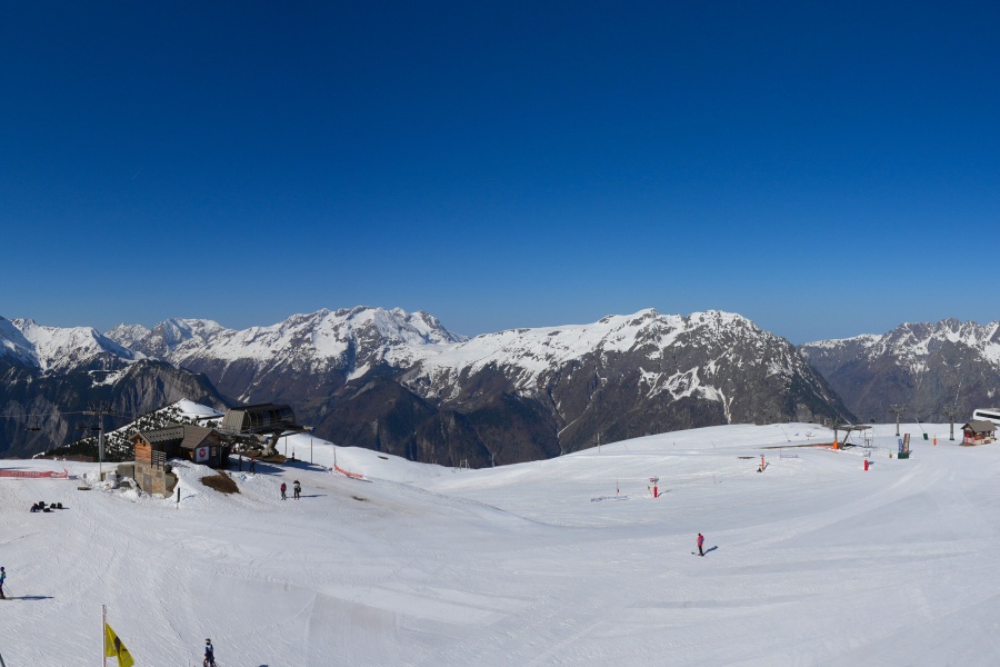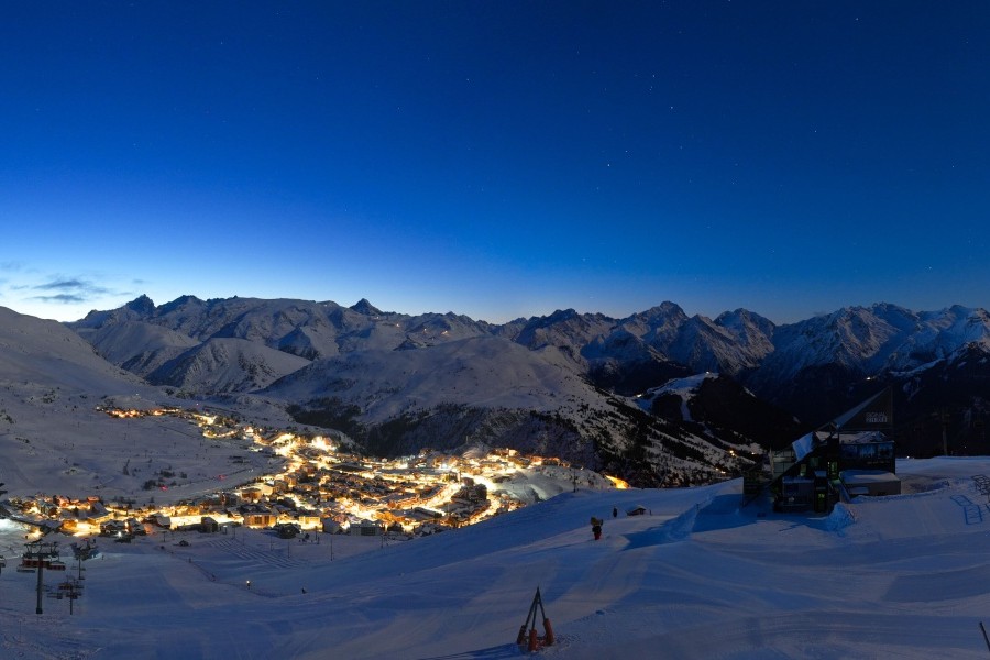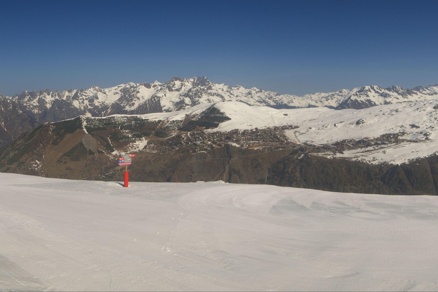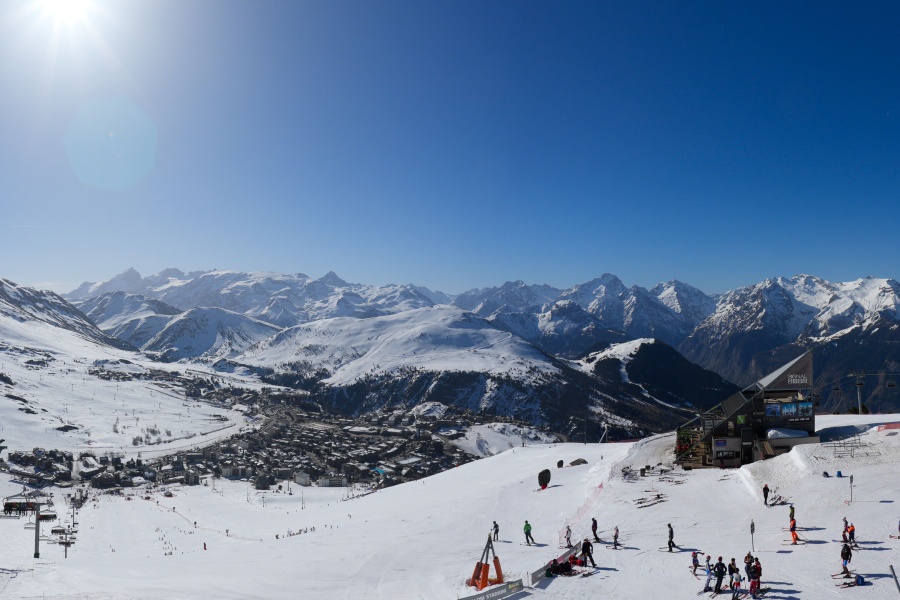 Known as the "Island of the Sun", Alpe d'Huez is one of the sunniest ski resorts in the French Alps, located in the Grandes Rousses massif. This ski resort boasts an extensive variety of slopes for all levels and breathtaking views of the Romanche valley and surrounding peaks. The resort, located at an altitude of 1,860 metres, offers 250 km of slopes and the famous 16 km long Sarenne black run, one of the longest in the world. Alpe d'Huez is an excellent destination for those who want a full day of skiing as well as for those looking for alternative activities and a vibrant environment.