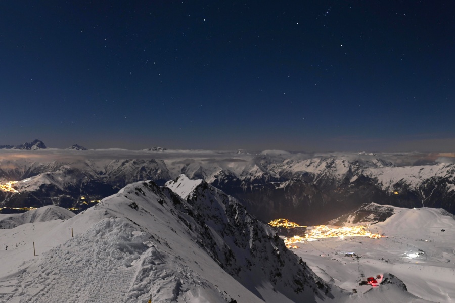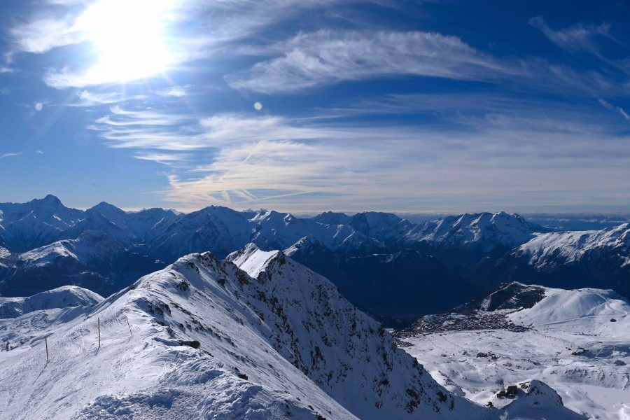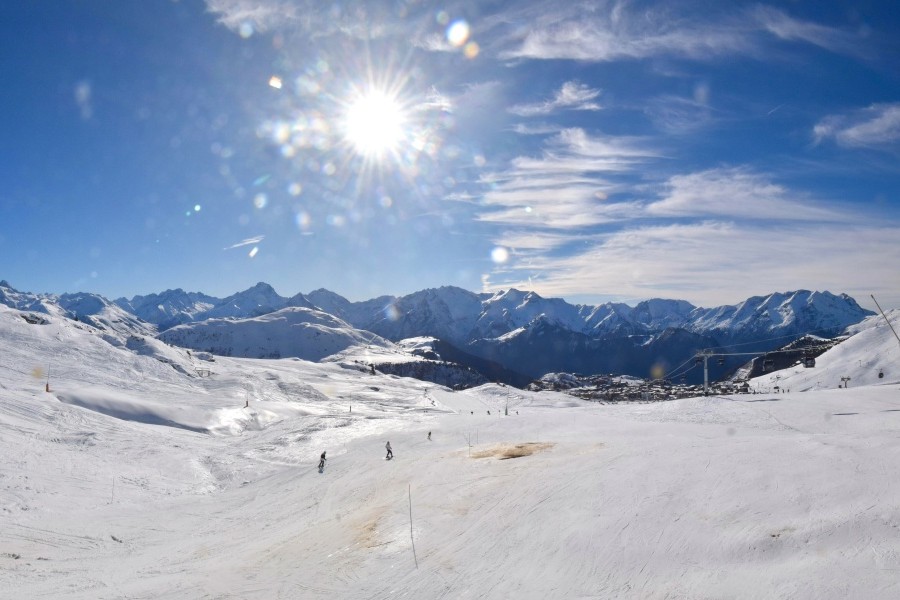 Known as the "Island of the Sun", Alpe d'Huez is one of the sunniest ski resorts in the French Alps, located in the Grandes Rousses massif. This ski resort boasts an extensive variety of slopes for all levels and breathtaking views of the Romanche valley and surrounding peaks. The resort, located at an altitude of 1,860 metres, offers 250 km of slopes and the famous 16 km long Sarenne black run, one of the longest in the world. Alpe d'Huez is an excellent destination for those who want a full day of skiing as well as for those looking for alternative activities and a vibrant environment.