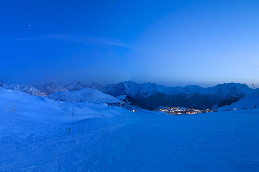 Known as the "Island of the Sun", Alpe d'Huez is one of the sunniest ski resorts in the French Alps, located in the Grandes Rousses massif. This ski resort boasts an extensive variety of slopes for all levels and breathtaking views of the Romanche valley and surrounding peaks. The resort, located at an altitude of 1,860 metres, offers 250 km of slopes and the famous 16 km long Sarenne black run, one of the longest in the world. Alpe d'Huez is an excellent destination for those who want a full day of skiing as well as for those looking for alternative activities and a vibrant environment.