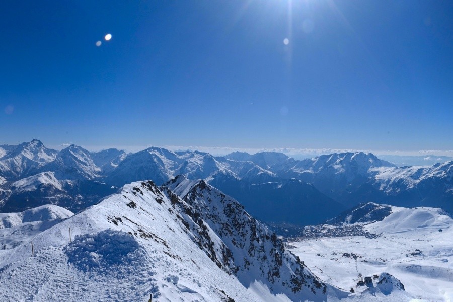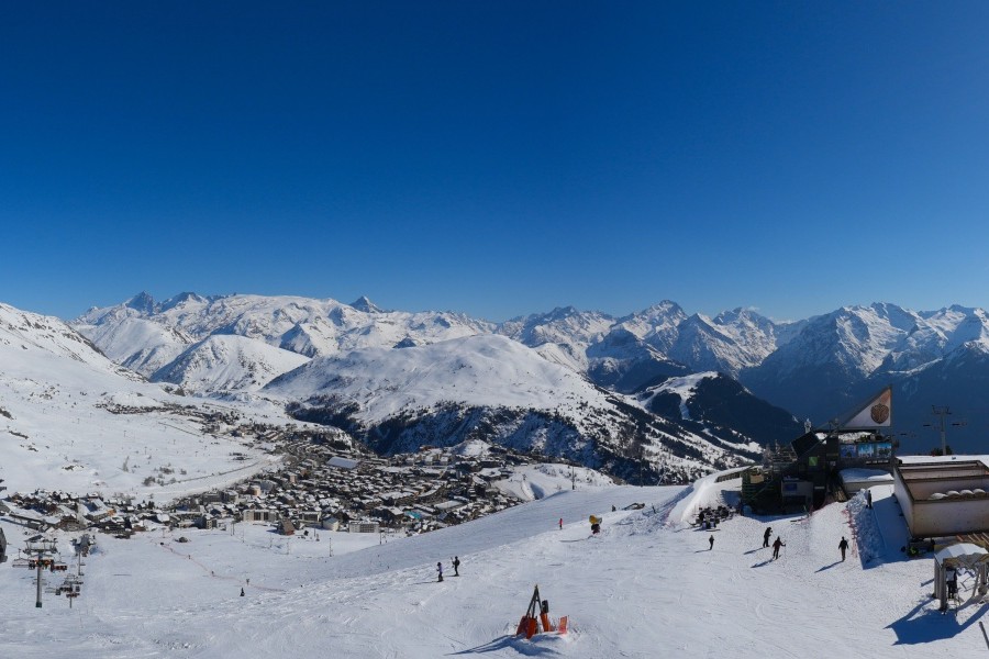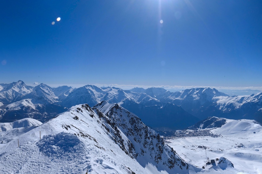 Known as the "Island of the Sun", Alpe d'Huez is one of the sunniest ski resorts in the French Alps, located in the Grandes Rousses massif. This ski resort boasts an extensive variety of slopes for all levels and breathtaking views of the Romanche valley and surrounding peaks. The resort, located at an altitude of 1,860 metres, offers 250 km of slopes and the famous 16 km long Sarenne black run, one of the longest in the world. Alpe d'Huez is an excellent destination for those who want a full day of skiing as well as for those looking for alternative activities and a vibrant environment.