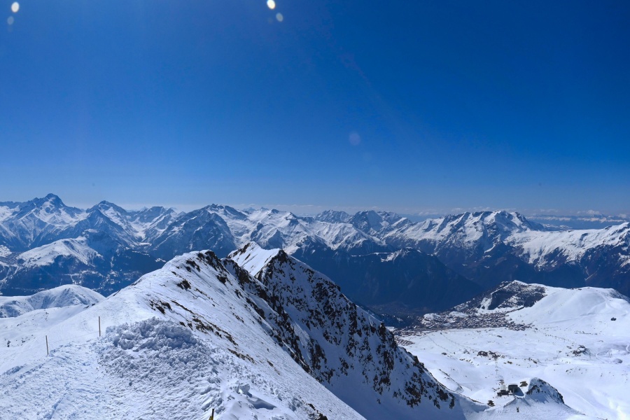 Known as the "Island of the Sun", Alpe d'Huez is one of the sunniest ski resorts in the French Alps, located in the Grandes Rousses massif. This ski resort boasts an extensive variety of slopes for all levels and breathtaking views of the Romanche valley and surrounding peaks. The resort, located at an altitude of 1,860 metres, offers 250 km of slopes and the famous 16 km long Sarenne black run, one of the longest in the world. Alpe d'Huez is an excellent destination for those who want a full day of skiing as well as for those looking for alternative activities and a vibrant environment.
