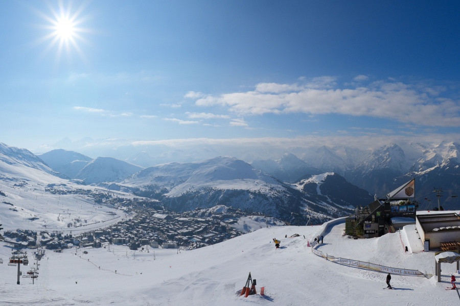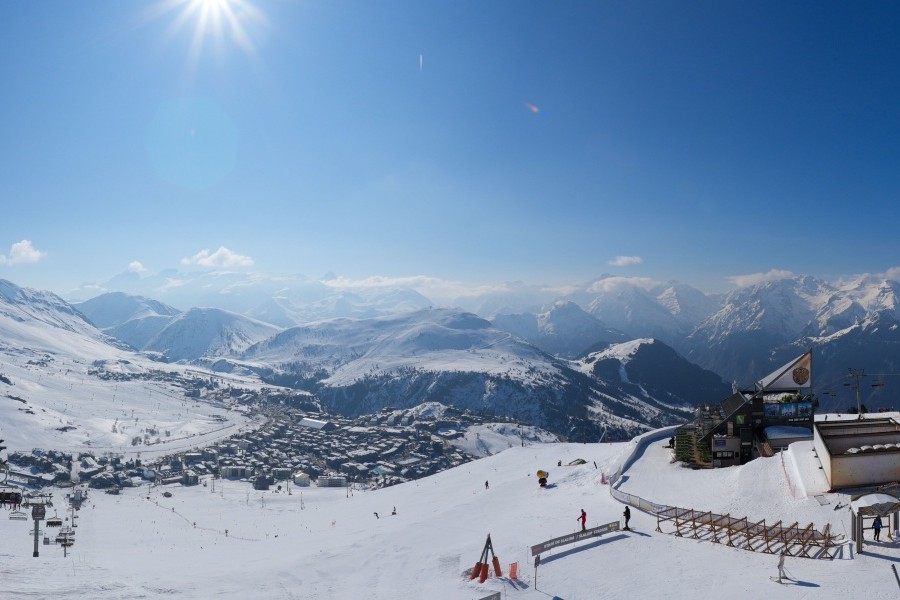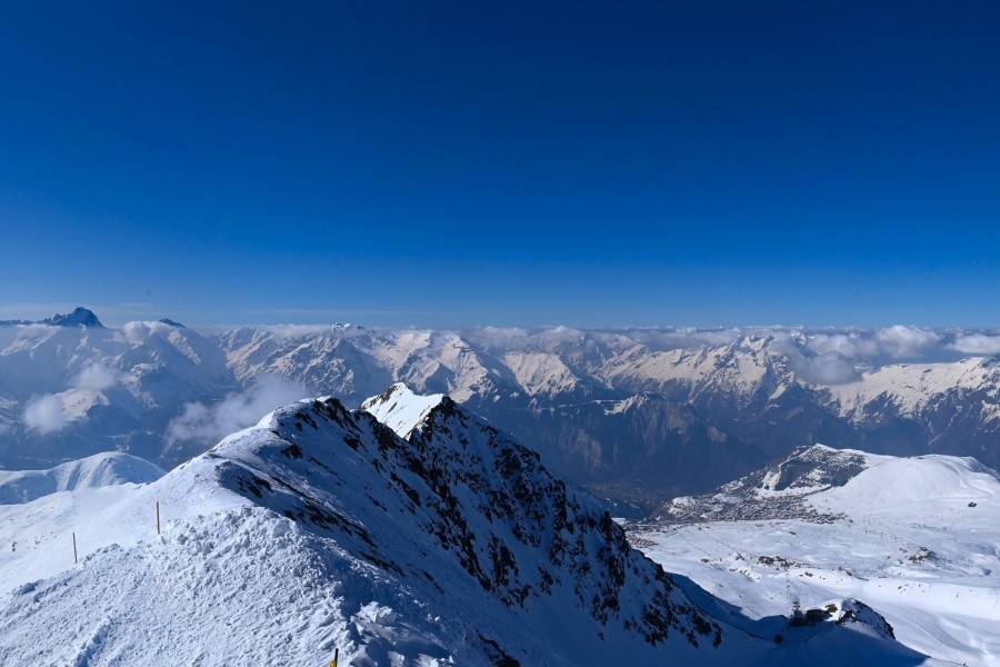 Known as the "Island of the Sun", Alpe d'Huez is one of the sunniest ski resorts in the French Alps, located in the Grandes Rousses massif. This ski resort boasts an extensive variety of slopes for all levels and breathtaking views of the Romanche valley and surrounding peaks. The resort, located at an altitude of 1,860 metres, offers 250 km of slopes and the famous 16 km long Sarenne black run, one of the longest in the world. Alpe d'Huez is an excellent destination for those who want a full day of skiing as well as for those looking for alternative activities and a vibrant environment.