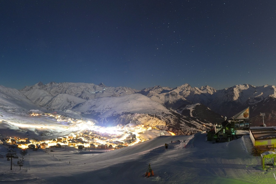 Known as the "Island of the Sun", Alpe d'Huez is one of the sunniest ski resorts in the French Alps, located in the Grandes Rousses massif. This ski resort boasts an extensive variety of slopes for all levels and breathtaking views of the Romanche valley and surrounding peaks. The resort, located at an altitude of 1,860 metres, offers 250 km of slopes and the famous 16 km long Sarenne black run, one of the longest in the world. Alpe d'Huez is an excellent destination for those who want a full day of skiing as well as for those looking for alternative activities and a vibrant environment.