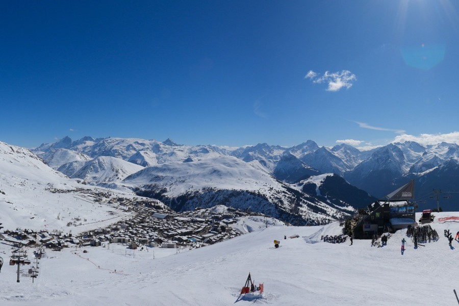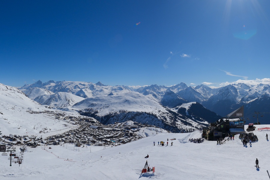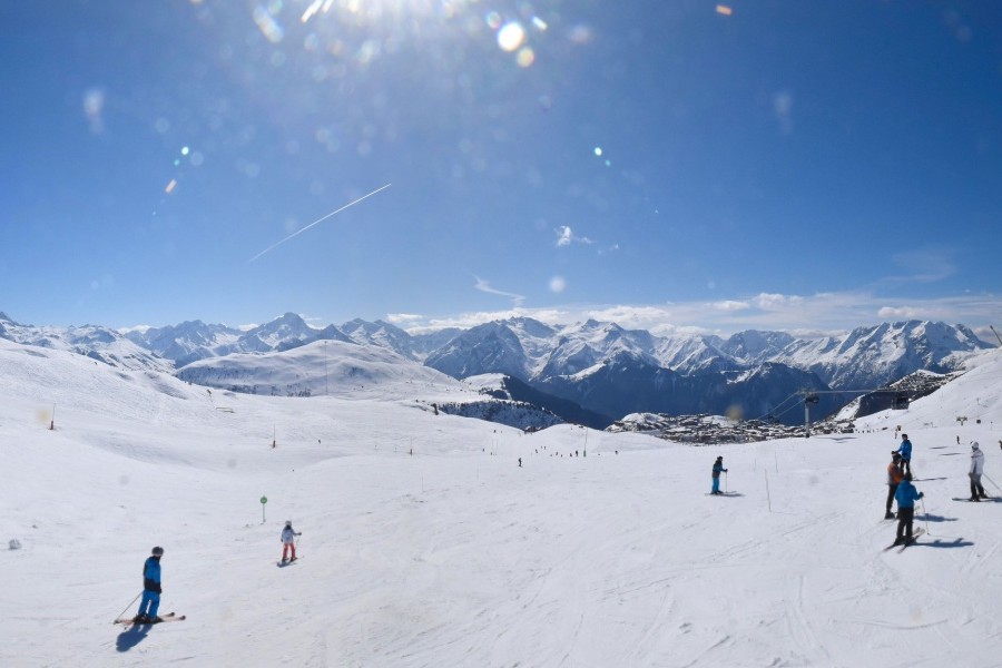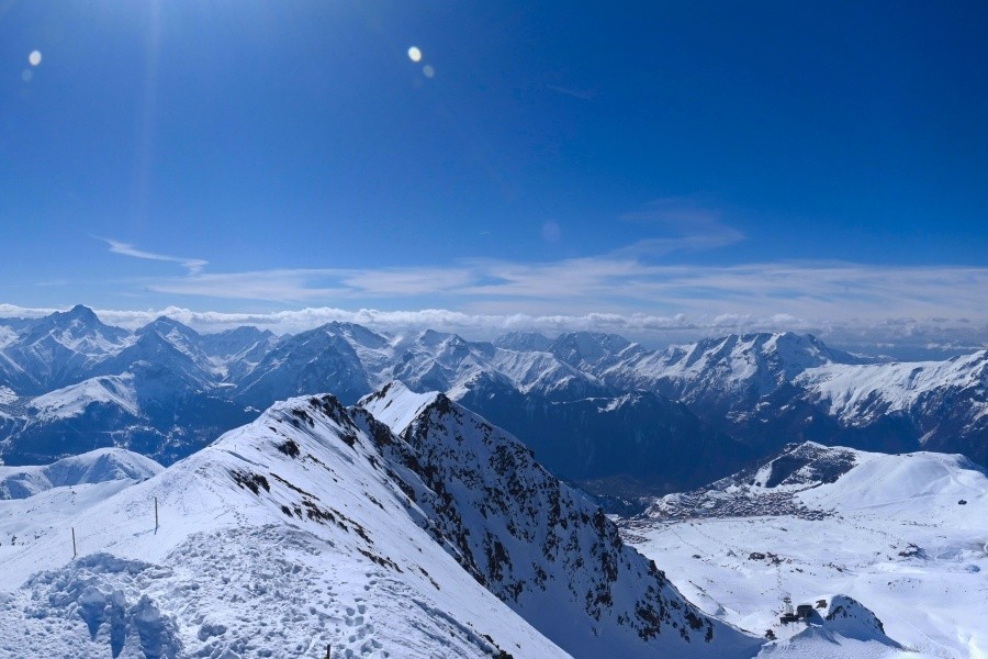 Known as the "Island of the Sun", Alpe d'Huez is one of the sunniest ski resorts in the French Alps, located in the Grandes Rousses massif. This ski resort boasts an extensive variety of slopes for all levels and breathtaking views of the Romanche valley and surrounding peaks. The resort, located at an altitude of 1,860 metres, offers 250 km of slopes and the famous 16 km long Sarenne black run, one of the longest in the world. Alpe d'Huez is an excellent destination for those who want a full day of skiing as well as for those looking for alternative activities and a vibrant environment.