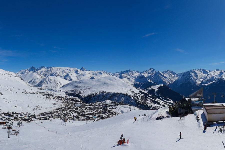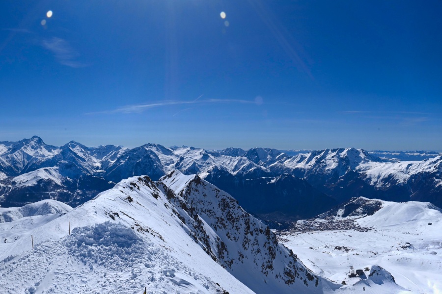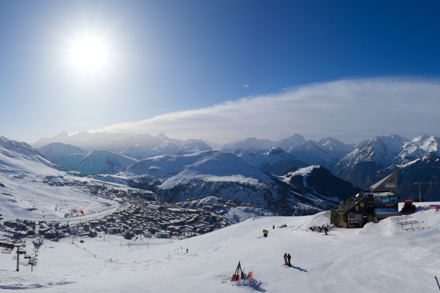 Known as the "Island of the Sun", Alpe d'Huez is one of the sunniest ski resorts in the French Alps, located in the Grandes Rousses massif. This ski resort boasts an extensive variety of slopes for all levels and breathtaking views of the Romanche valley and surrounding peaks. The resort, located at an altitude of 1,860 metres, offers 250 km of slopes and the famous 16 km long Sarenne black run, one of the longest in the world. Alpe d'Huez is an excellent destination for those who want a full day of skiing as well as for those looking for alternative activities and a vibrant environment.