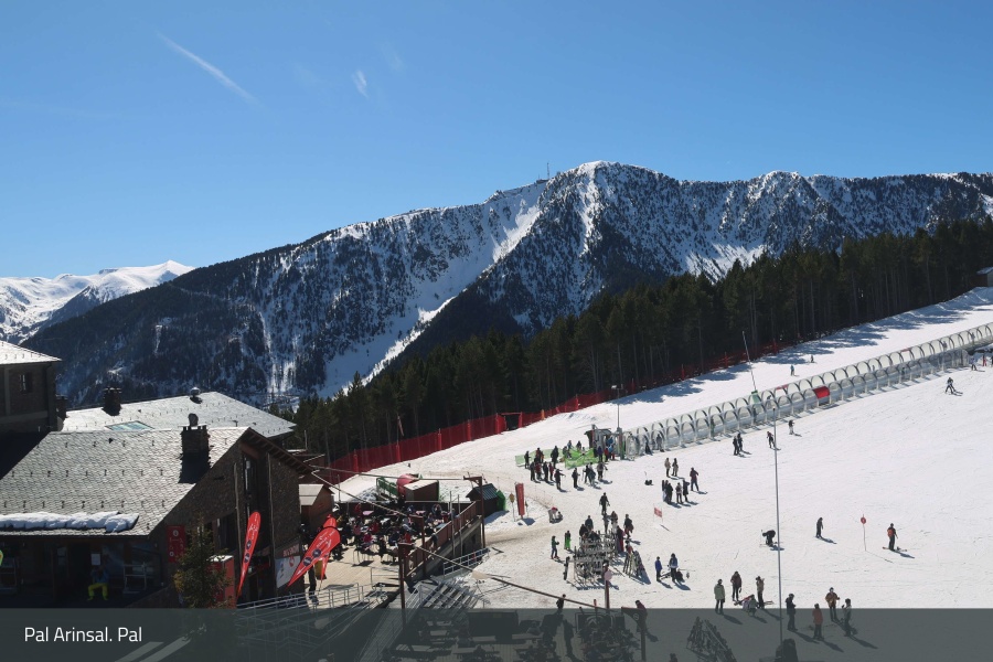 The Arinsal ski area is located about 5 kilometers from the Arinsal town centre. You can access the slopes by car, bus or if you're skiing in Pal, there's a cable-car that will take you all the way to Arinsal. In the centre of Arinsal there's also another cable-car you can take. This ski area has one of the largest slopes in Andorra, with more than 1,000 meters of difference between the highest and the lowest part of the "Les Mirrades" track. A fun fact about this track is that it also reaches a part of the town of Arinsal and you can reach it from some of the ski hotels located around it.