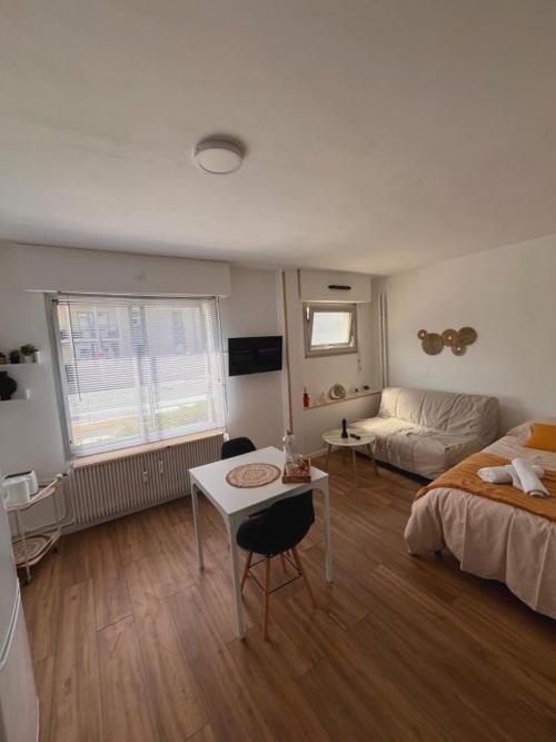 L’hébergement Hypercentre Béthune - 4 pers - Parking privé se trouve à Béthune, à respectivement 26 km, 37 km et 39 km de ces lieux d’intérêt : Stade Bollaert-Delelis, Métro Saint-Philibert et Zoo de Lille. Cet hébergement est installé à 26 km de : Musée du Louvre-Lens. Vous pourrez profiter d’une connexion Wi-Fi gratuite et d’un parking privé disponible sur place. Cet appartement se compose de 1 chambre, d'un salon, d'une cuisine entièrement équipée avec un réfrigérateur et une machine à café, ainsi que de 1 salle de bains avec une douche et des articles de toilette gratuits. Une télévision à écran plat avec les chaînes du câble est disponible. Vous séjournerez à respectivement 40 km et 40 km de ces lieux d’intérêt : Maison Coilliot et Printemps. L'aéroport le plus proche (Aéroport de Lille - Lesquin) est à 57 km.