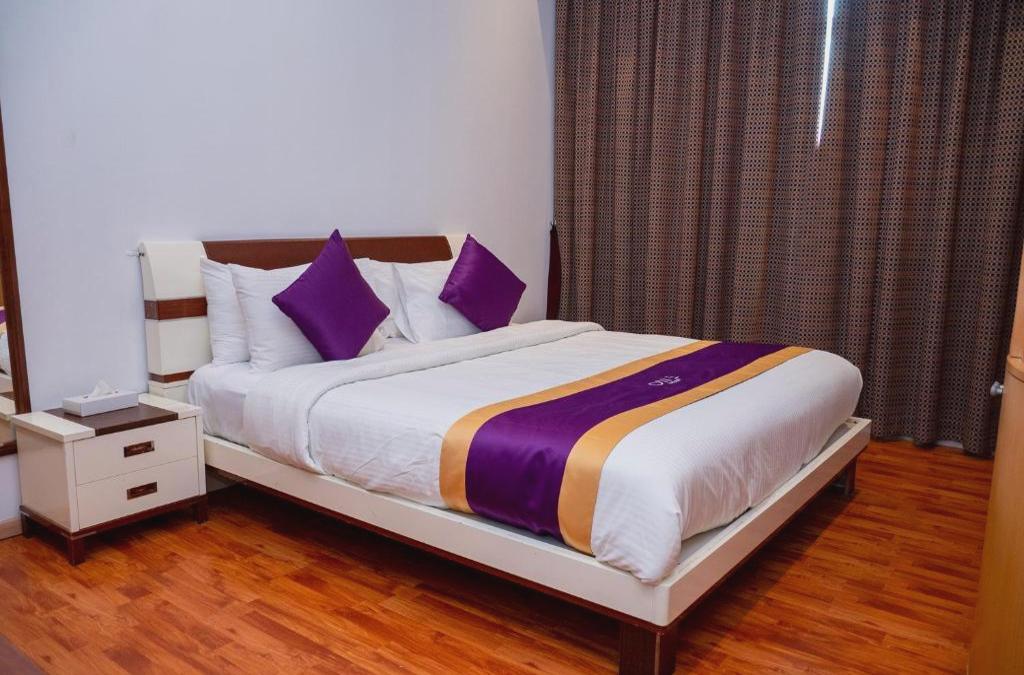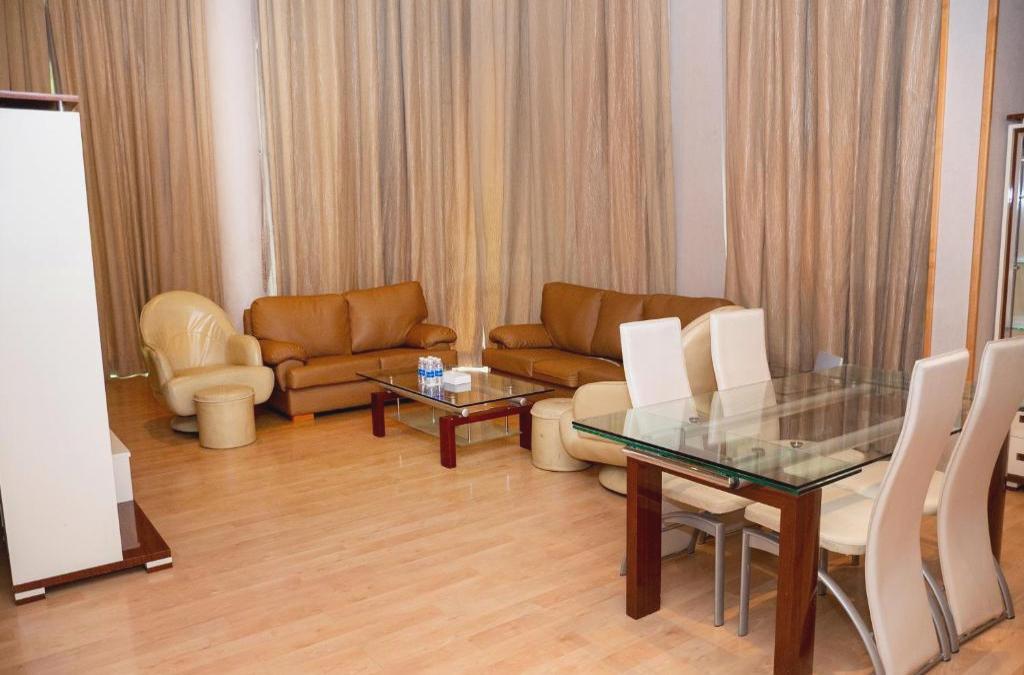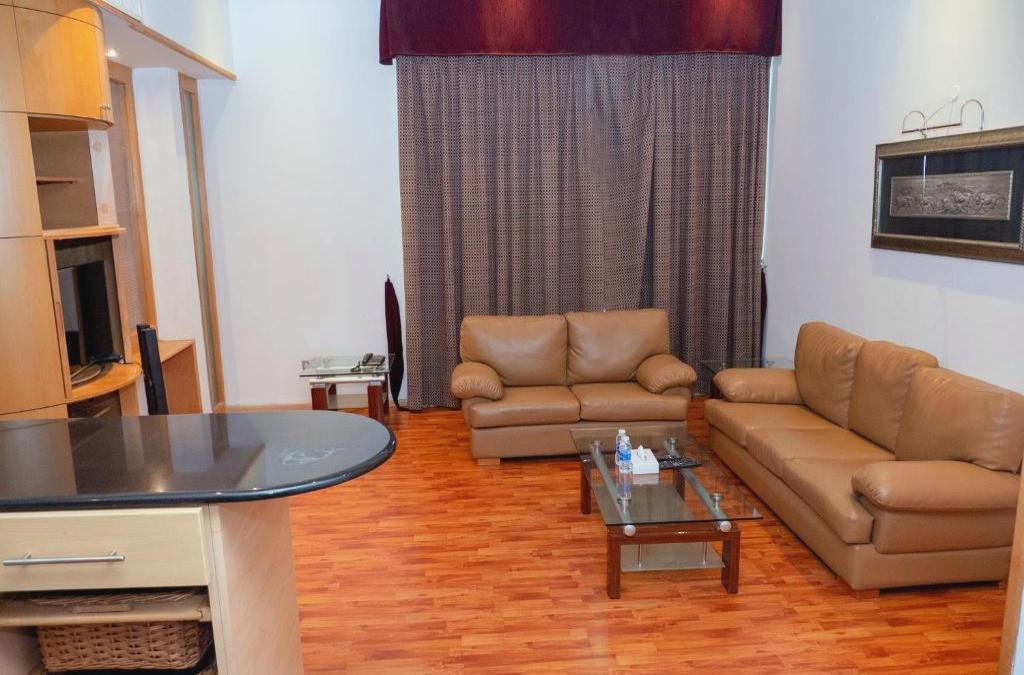 Les appartements sont idéalement situés pour les voyageurs d'offres et les cadres importants. Ils ne sont qu'à 10 minutes du centre-ville et du quartier diplomatique. Cet établissement de charme propose 32 résidences exécutives dotées d'équipements ultramodernes. Il a été construit et conçu pour des clients ayant un style de vie incomparable et une forfaition pour le détail. Les clients sont accueillis dans un hall avec une réception et un service de check-out 24 heures sur 24. Les autres installations de cet hôtel urbain climatisé comprennent un ascenseur, un accès Internet sans fil, un service de chambre et un service de blanchisserie. Les équipements et installations de l'hébergement comprennent une douche, un lit double, la télévision par satellite/câble et l'accès à Internet. La kitchenette est équipée d'un four à micro-ondes et d'une cafetière/théière. Les autres équipements standard comprennent un système de chauffage/climatisation réglable. Les installations de loisirs de l'hôtel comprennent une piscine sur le toit et un centre de remise en forme ultramoderne. L'hôtel dispose d'un grand espace barbecue avec une vue panoramique sur le toit.