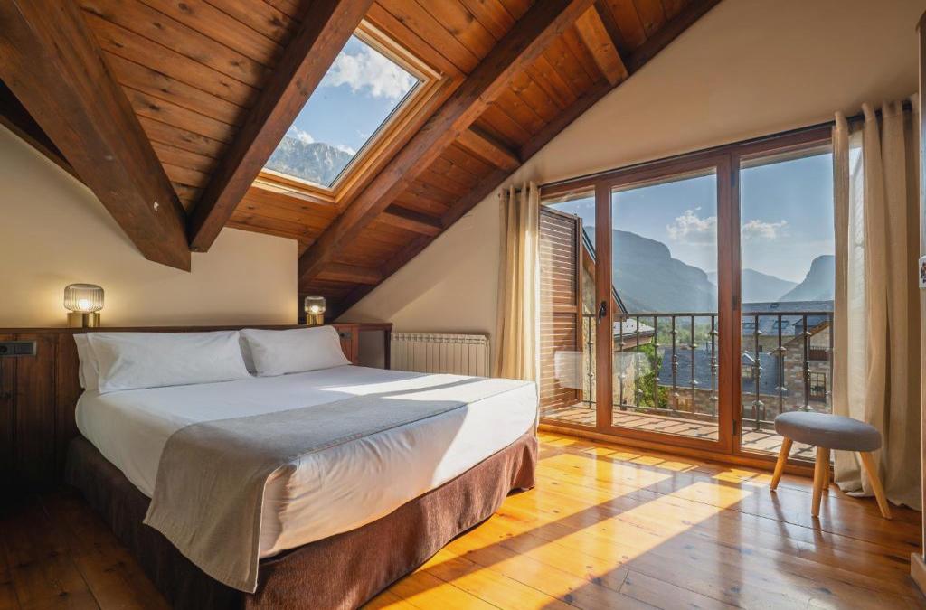 Appartements situés dans le centre de Plan, un village pyrénéen traditionnel de la vallée de Chistau, célèbre pour sa caravane pour femmes de 1985. Vous trouverez de nombreux commerces, restaurants et discothèques à quelques minutes à pied. La station de ski la plus proche se trouve à environ 45 minutes de route de l'hôtel, à Piau Engaly. Vous pourrez faire du ski de fond dans la vallée de la Pineta, à 30 minutes de route. Le parc national de Posets-Maladeta et le parc national d'Ordesa et Monte Perdido sont respectivement à 12 et 30 km de l'hébergement. Ces charmants appartements sont une extension élégante d'un manoir du XIXe siècle. Les clients sont accueillis dans un hall d'accueil et disposent d'un ascenseur. Une connexion Internet WiFi, un service de blanchisserie (inclus uniquement pour les longs séjours et un parking sous forme de garage (non compris dans le prix) sont également inclus. Les appartements sont très lumineux et le style loft présente une décoration exquise alliant design et rustique avec des éléments modernes. Ils disposent d'1 ou 2 chambres avec lits de 1,50 et d'une salle de bains privative équipée d'une baignoire spa et d'un sèche-cheveux. Chaque appartement est équipé d'un salon cuisine avec réfrigérateur, four à micro-ondes et cafetière / théière. Les autres installations sont la télévision par câble / satellite, une connexion Internet et le chauffage réglable. Toutes les chambres offrent une vue magnifique sur la belle région rurale depuis le balcon ou la terrasse privés.