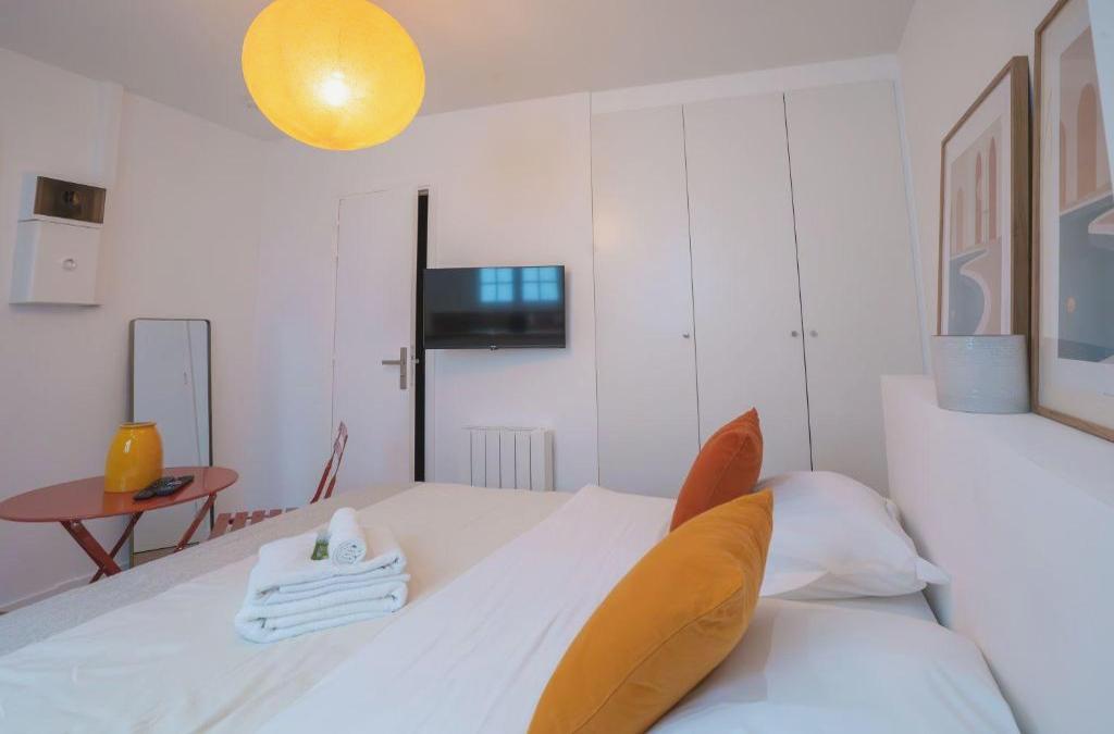Le Studio neuf metro Etienne marcel paris 3 - 2P - FLAT-GUEST est situé dans le 3ème arr. Vous séjournerez à 1,3 km du musée du Louvre, à 1,6 km de la gare de l'Est et à À 1,9 km de la gare du Nord. Il se trouve à environ 3,5 km du musée d'Orsay, à 3,9 km de l'opéra Bastille et à 4,4 km du jardin des Tuileries. Il se trouve à 500 mètres du centre Pompidou et à 1,8 km du centre-ville. Doté d'une connexion Wi-Fi gratuite, cet appartement dispose d'une télévision par câble et d'une cuisine entièrement équipée avec un four micro-ondes et un réfrigérateur. Les serviettes et le linge de lit sont fournis. Pour plus d'intimité, l'hébergement dispose d'une entrée privée. Vous séjournerez à proximité de la cathédrale Notre-Dame, de la Sainte-Chapelle et de l'opéra Garnier. L'aéroport de Paris-Orly est à 19 km.