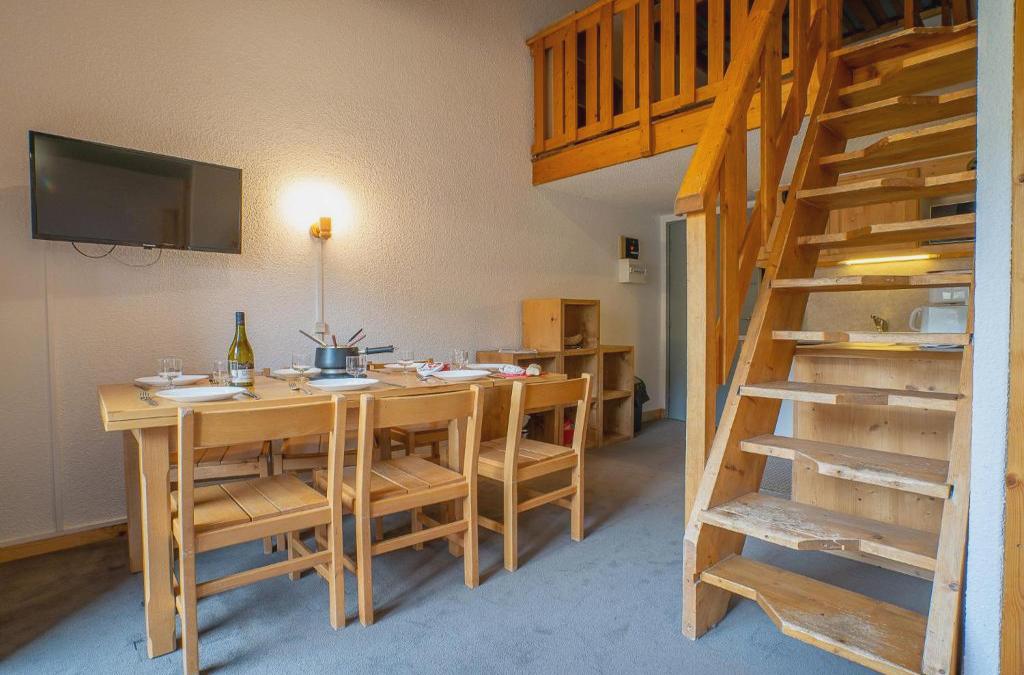 Résidence "Le Jetay", de 5 étages. 500 m du centre, au pied des pistes. Dans l'immeuble: local à skis. Possibilité de parking. Épicerie, supermarché 200 m, centre commercial 500 m. Remontées mécaniques 50 m, pistes de ski 10 m. A noter: la photo correspond à l'une des maisons. Des appartements supplémentaires sont disponibles à la réservation dans cet établissement. La résidence "Le JETAY" est reliée par des escaliers au centre de la station de ski (école de ski, commerces en tout genre, office de tourisme ...). Apt 2 pièces 29 m2 au 1er étage. Séjour avec 1 divan-lit double (140 cm, longueur 190 cm), écran plat. 1 chambre avec porte coulissante avec 1 lit gigogne (2 pers. 2 x 80 cm, longueur 190 cm). Coin cuisine (4 plaques chauffantes, four, micro-ondes, cafetière électrique). Salle de bain, WC séparé. Chauffage électrique. Balcon orienté ouest. Belle vue sur les montagnes. Maximum 1 animal / chien autorisé. Entrée Bruant.