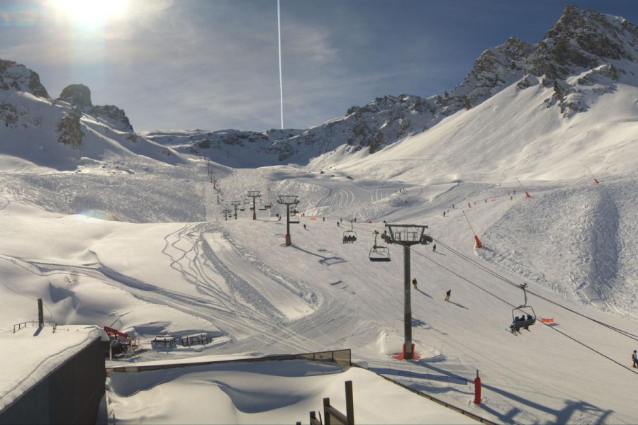 La station a accès au glacier de la Grande Motte, qui permet de skier même en été. Ce glacier offre des pistes de haute altitude avec des vues spectaculaires et un enneigement garanti presque toute l'année.