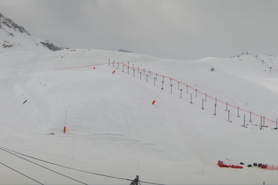 Le snowpark de Tignes, avec ses modules vert (XS) et bleu (S), est idéal pour les débutants et ceux qui cherchent à améliorer leurs compétences en freestyle.
