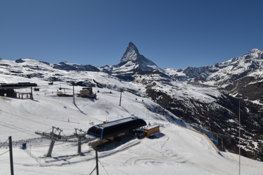 Klein Matterhorn : L'accès de Zermatt au Klein Matterhorn est le plus inconfortable, car le téléphérique part d'une extrémité du village (à 15 minutes de marche du centre, il y a un ski-bus). Le Klein Matterhorn est le plus grand des domaines de Zermatt, avec les pistes les plus attrayantes et les plus difficiles, et avec la connexion à la station italienne de Cervinia. Les pistes de ski s'étendent de 1600 à 3800 m d'altitude. Au sommet se trouve un glacier où l'on peut skier toute l'année. Tout au long de l'année, des milliers de touristes empruntent ces téléphériques pour profiter d'une vue incroyable sur le Cervin, le glacier et les autres sommets. À Zermatt, monter est presque (mais seulement presque) aussi excitant que descendre.